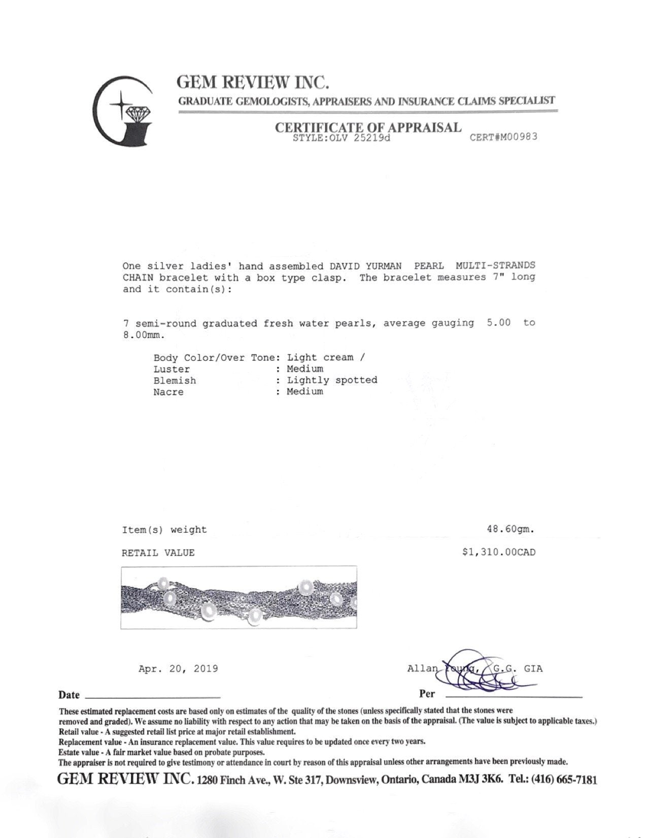 David Yurman Multi-Strand Pearl Chain Bracelet