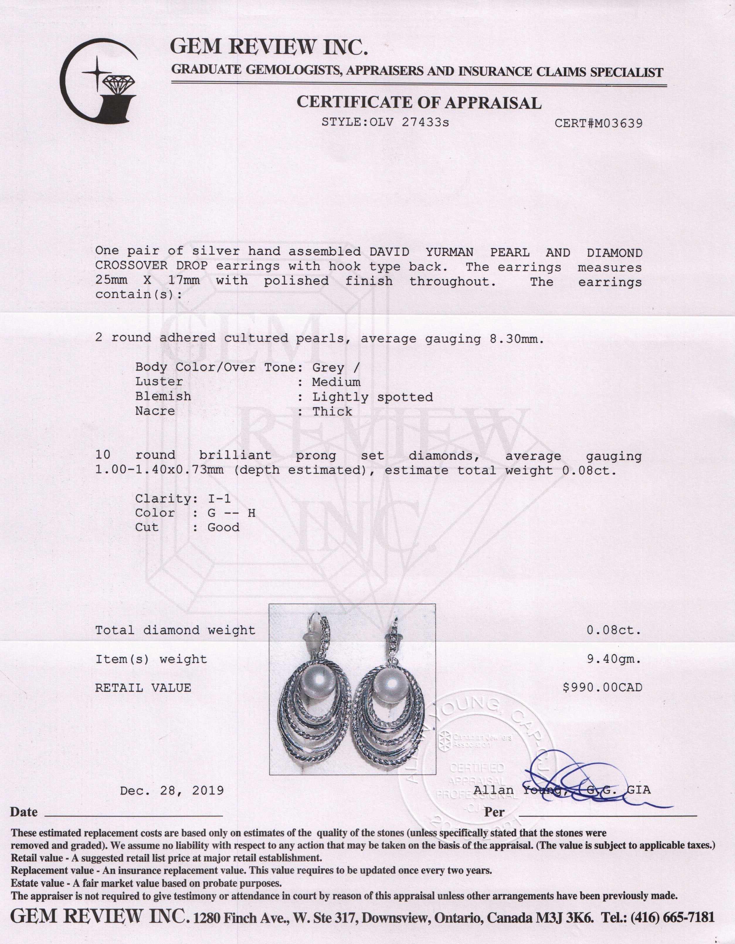 David Yurman Pearl & Diamond Crossover Hoop Earrings