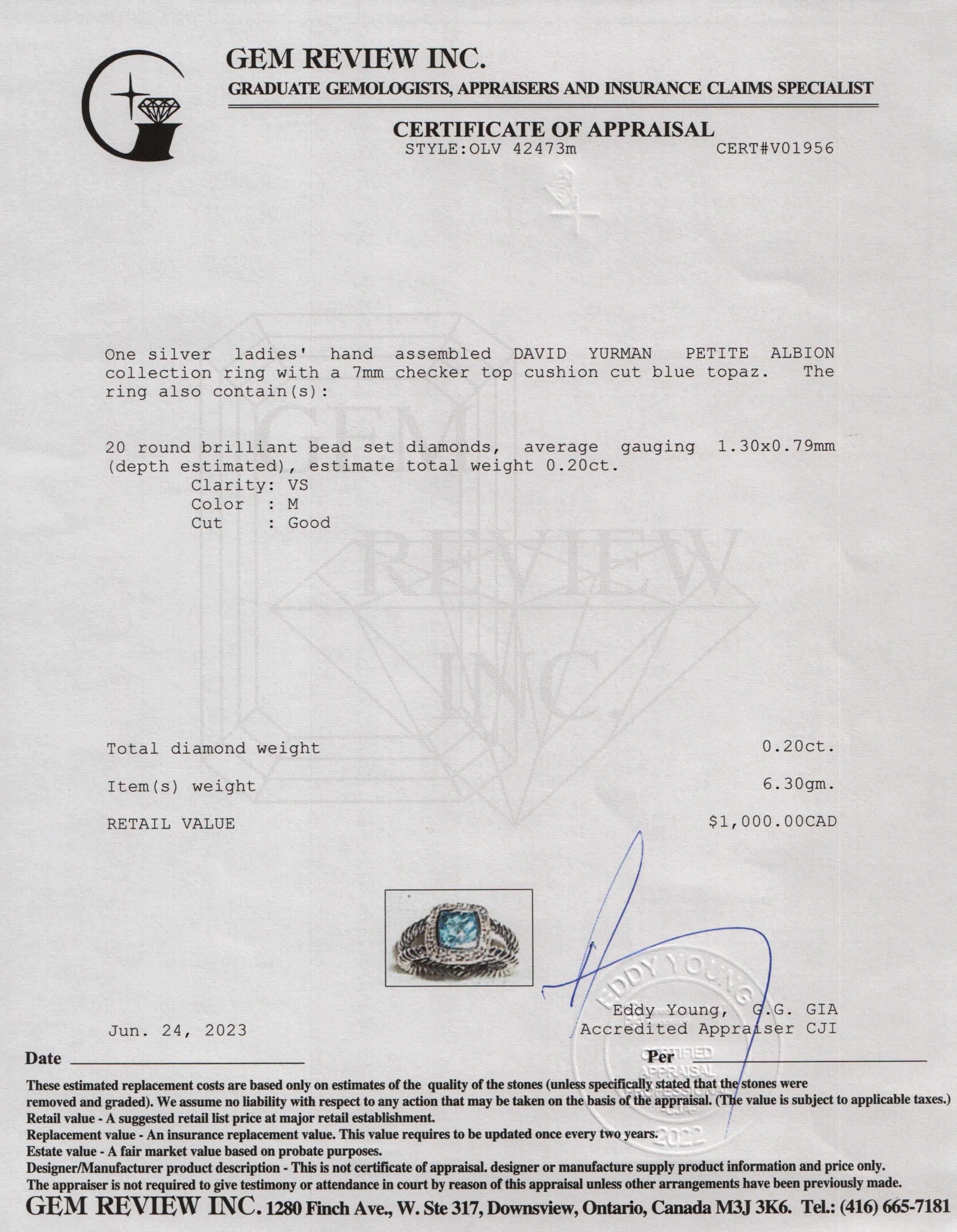David Yurman Petite Albion Ring with Blue Topaz and Diamonds
