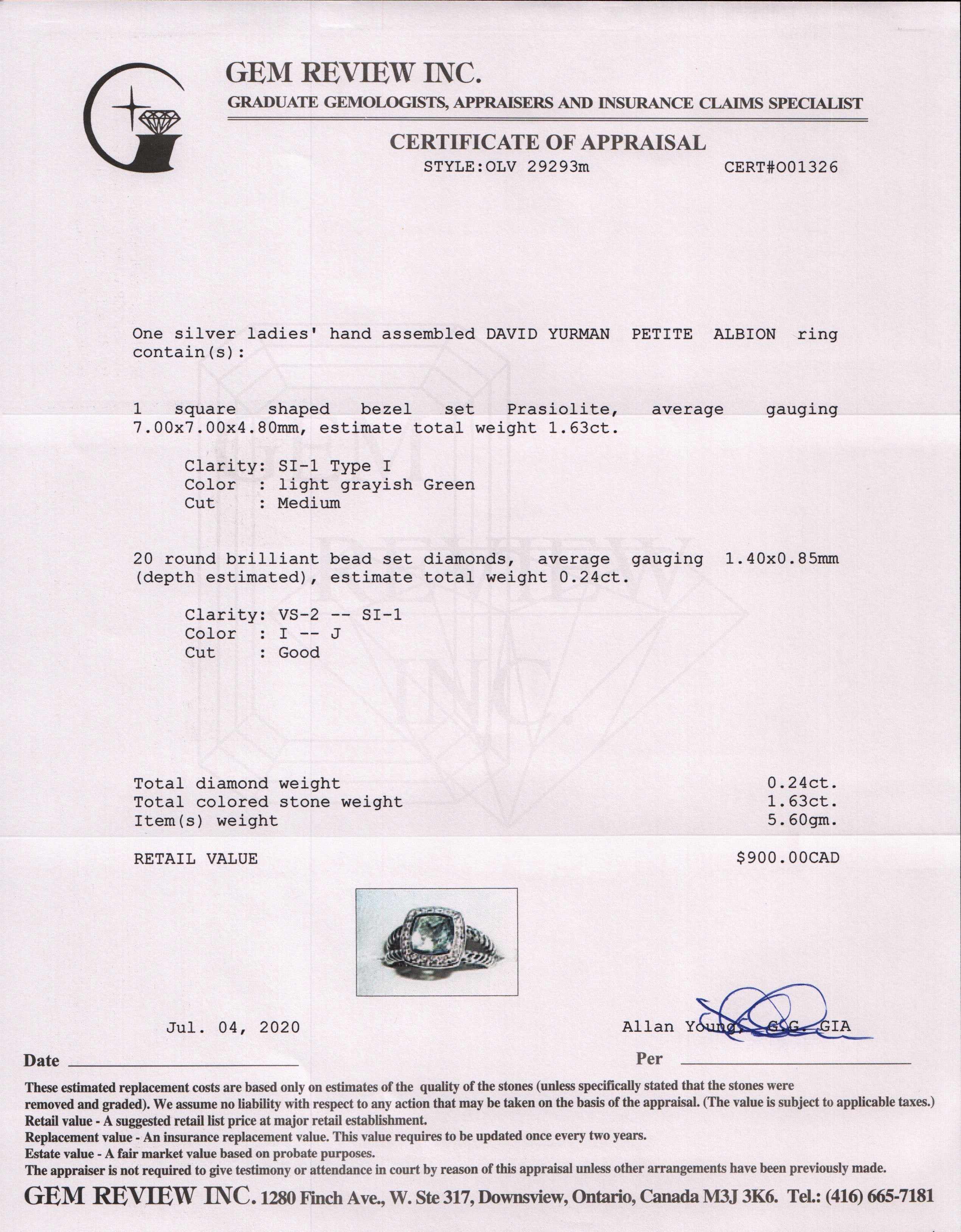 David Yurman Petite Albion Ring with Prasiolite and Diamonds