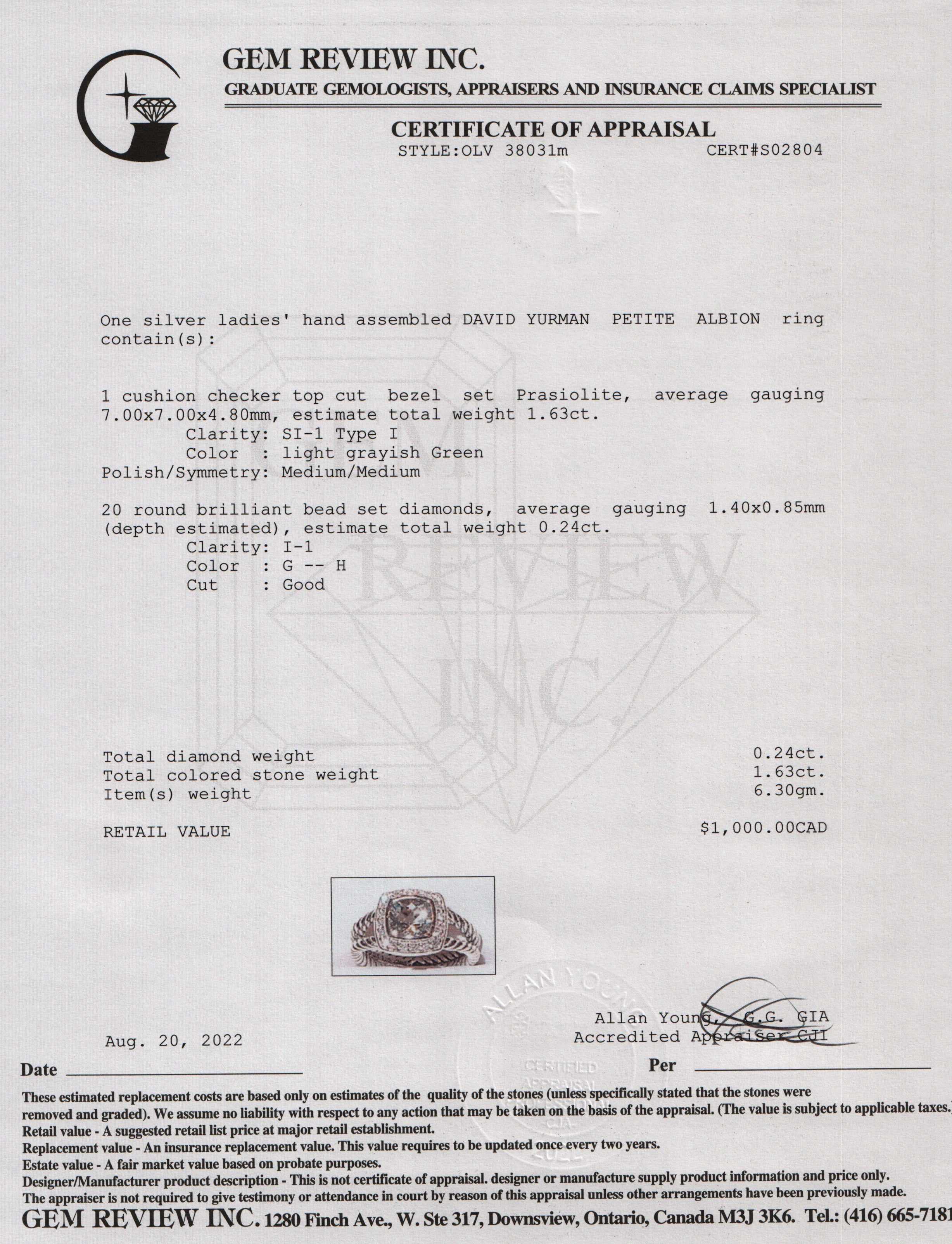 David Yurman Petite Albion Ring with Prasiolite and Diamonds