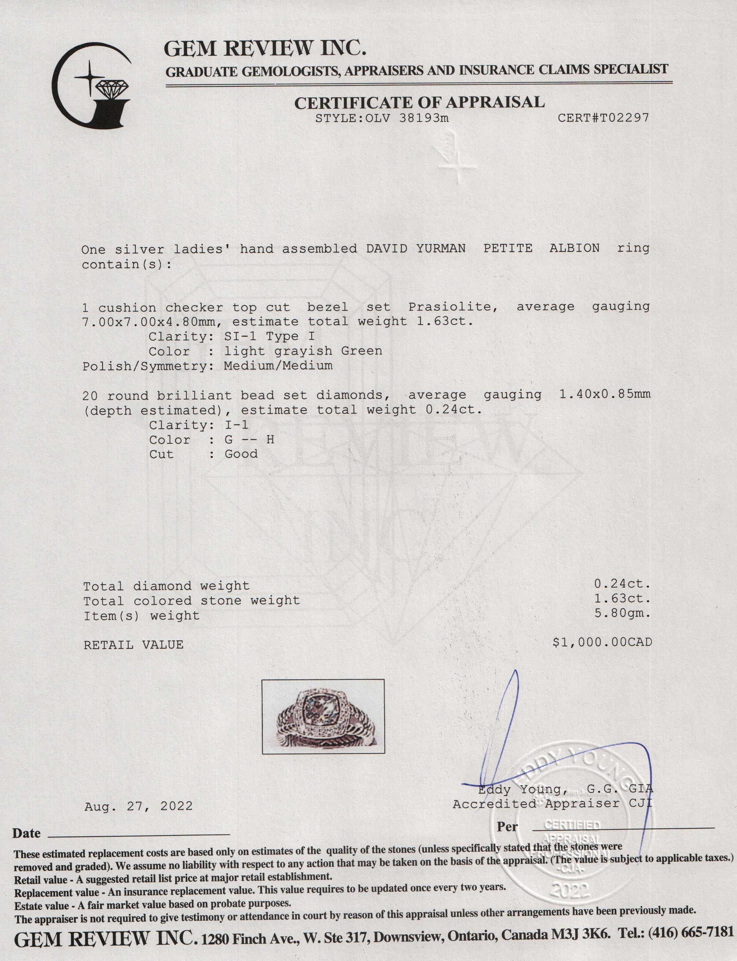 David Yurman Petite Albion Ring with Prasiolite and Diamonds