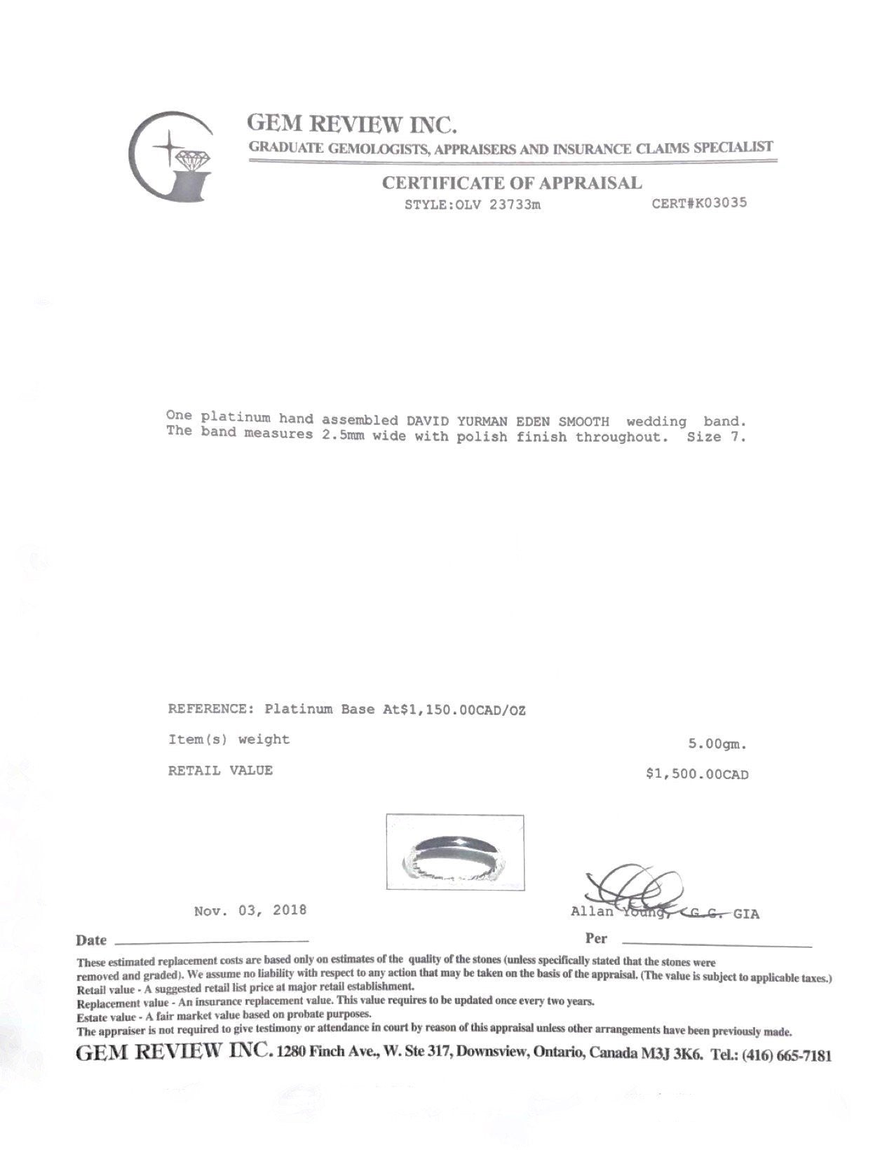David Yurman Platinum DY Eden Smooth Wedding Band