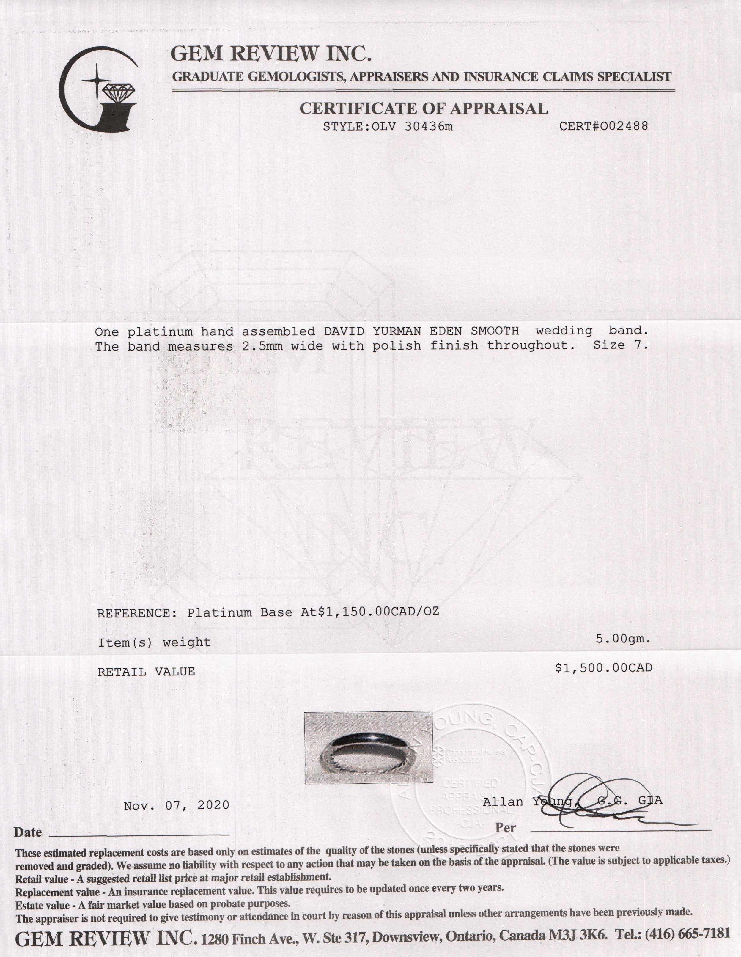 David Yurman Platinum DY Eden Smooth Wedding Band