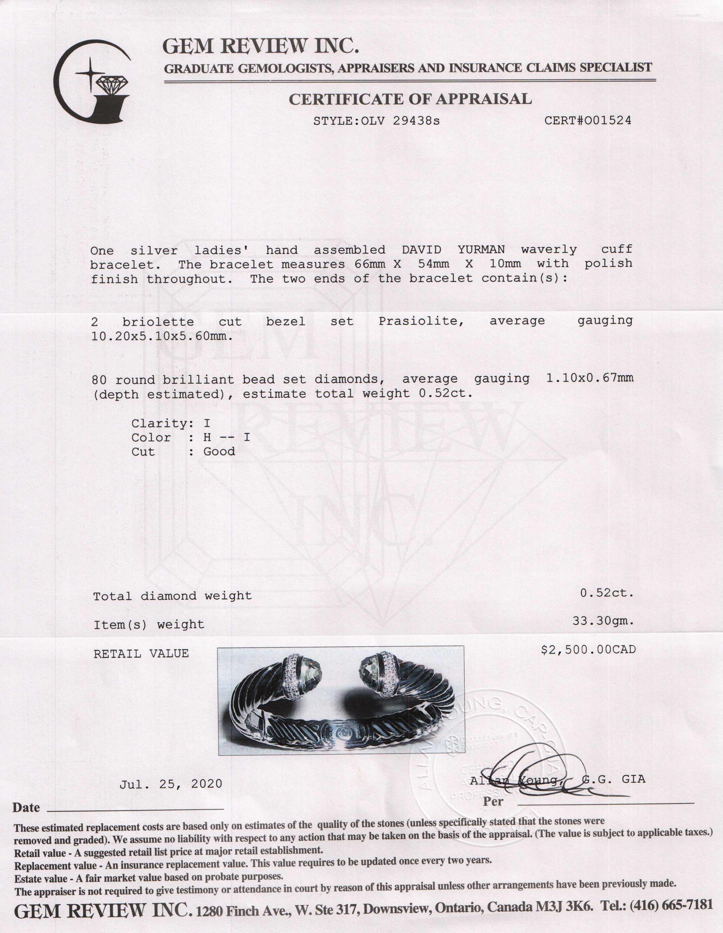 David Yurman Prasiolite & Diamond Waverly Cable Bracelet