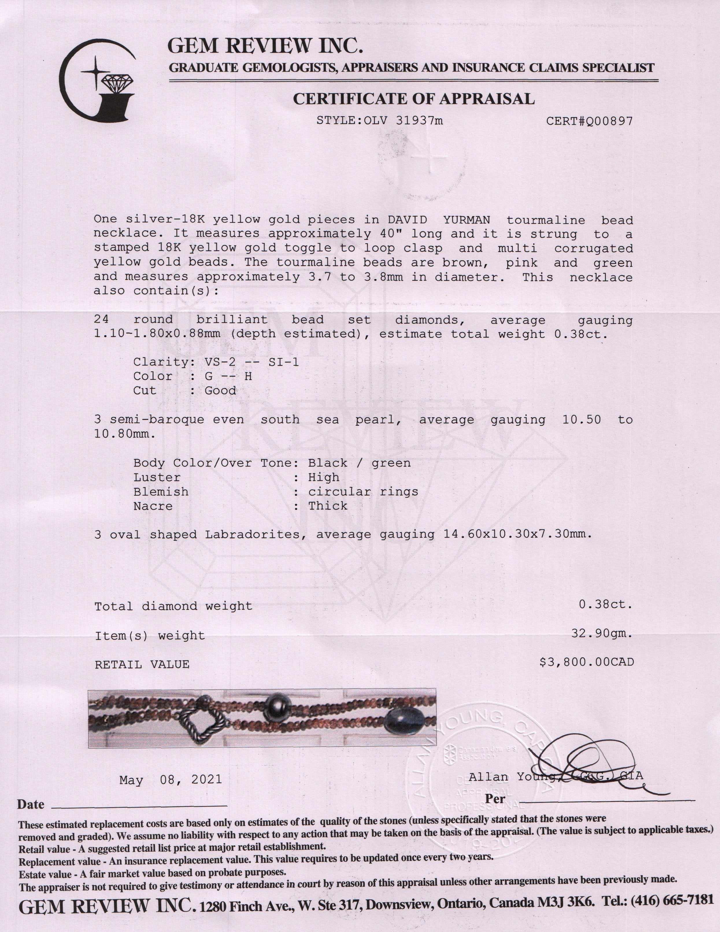 David Yurman Signature Tourmaline Bead Necklace w/ Pearl & Diamonds