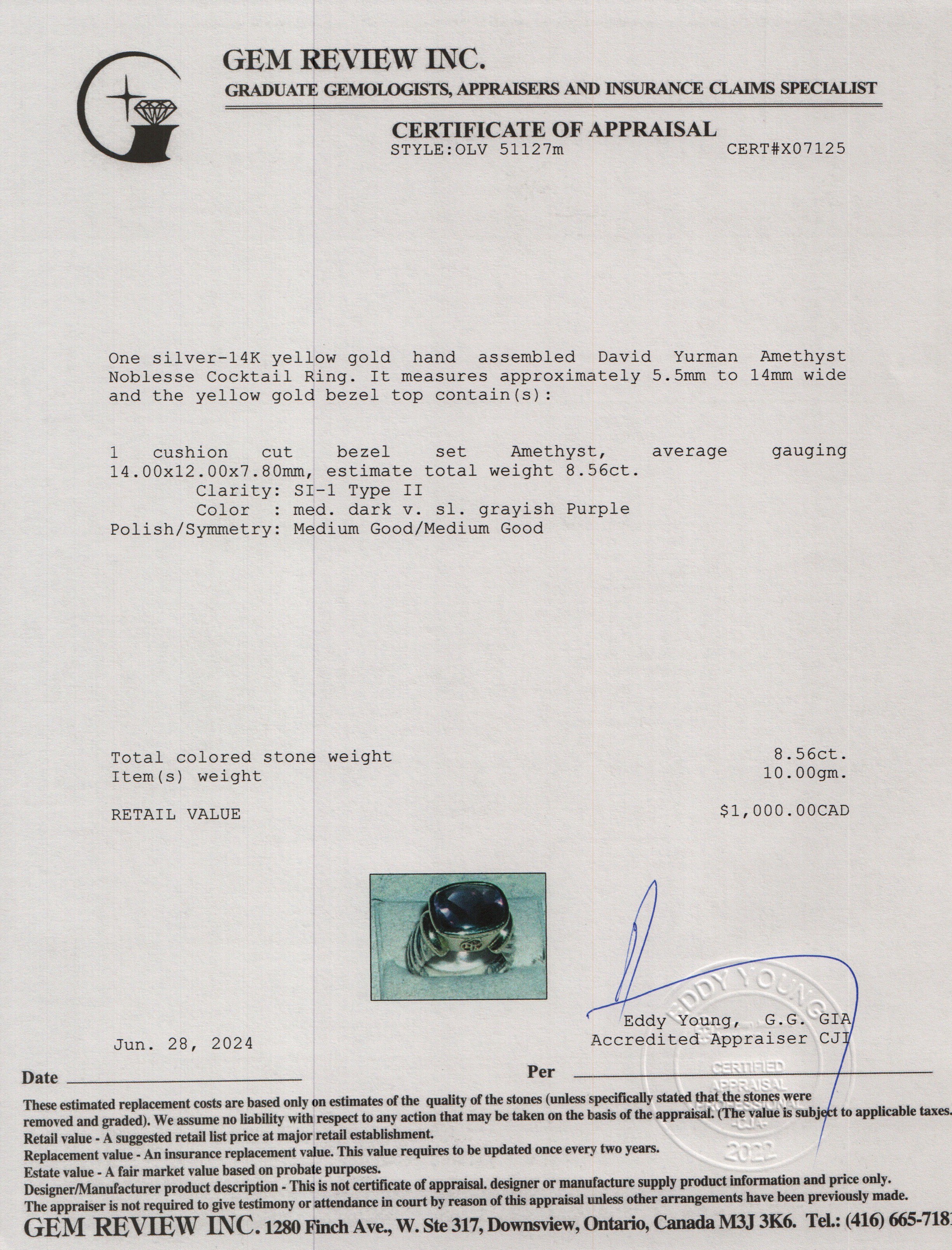 Sterling Silver & 14k Yellow Gold Amethyst Noblesse Cocktail Ring, Size 6.5