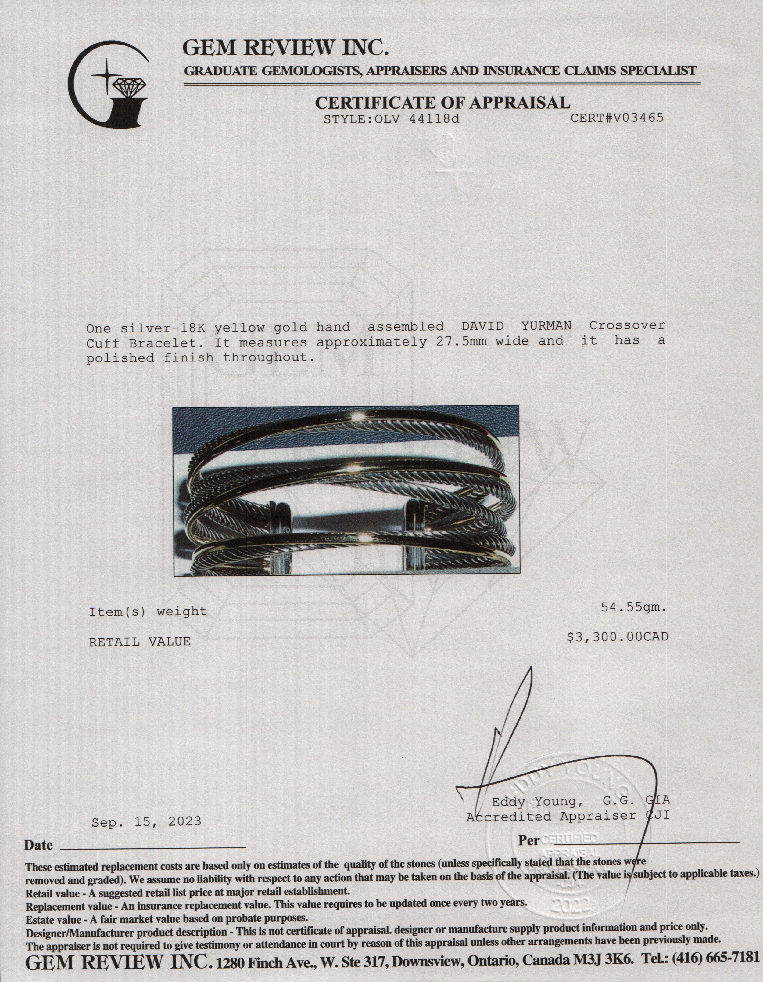 Sterling Silver & 18k Yellow Gold 27.5 MM Crossover Cuff Bracelet w/ Box