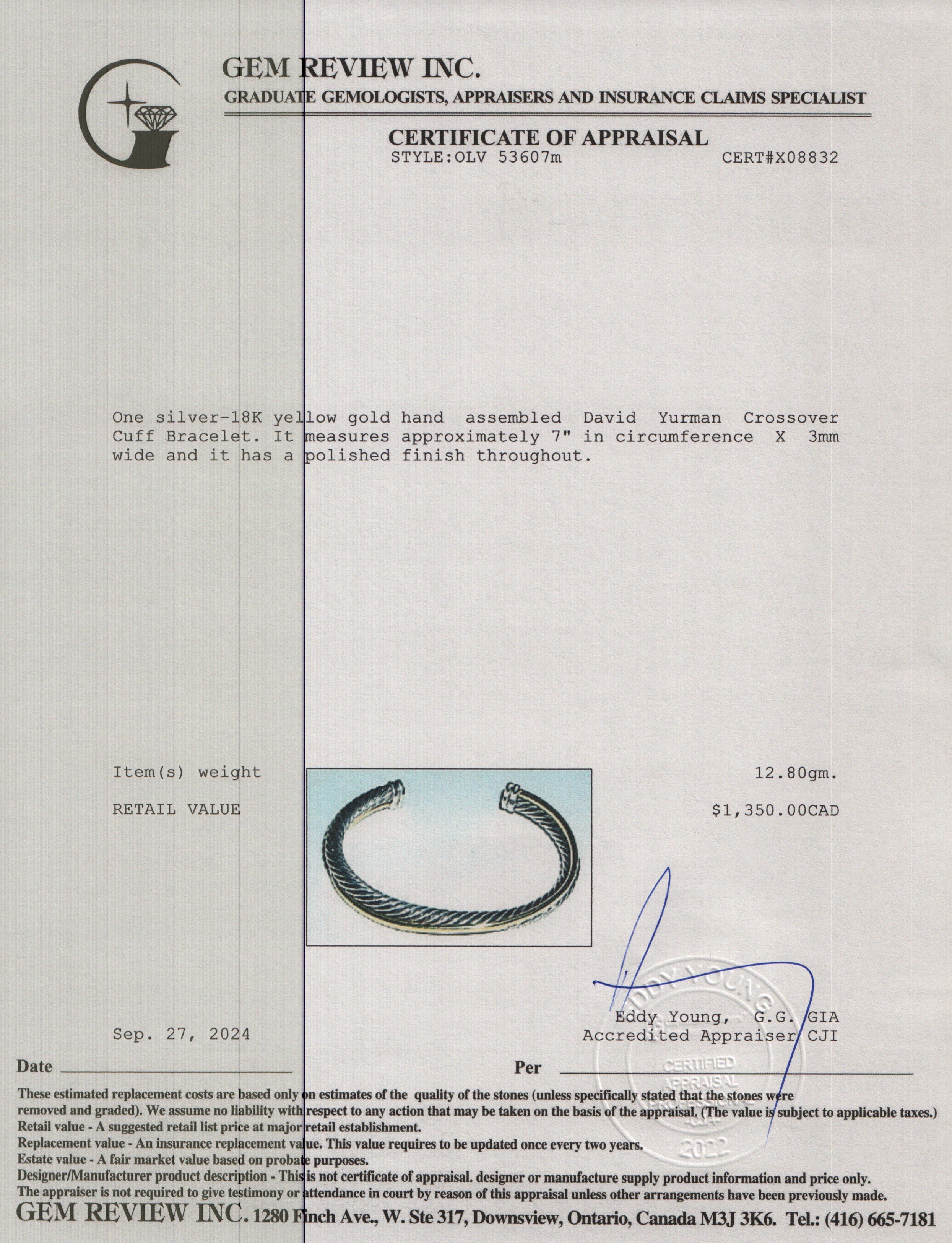 Sterling Silver & 18k Yellow Gold 3 MM Crossover Cuff Bracelet