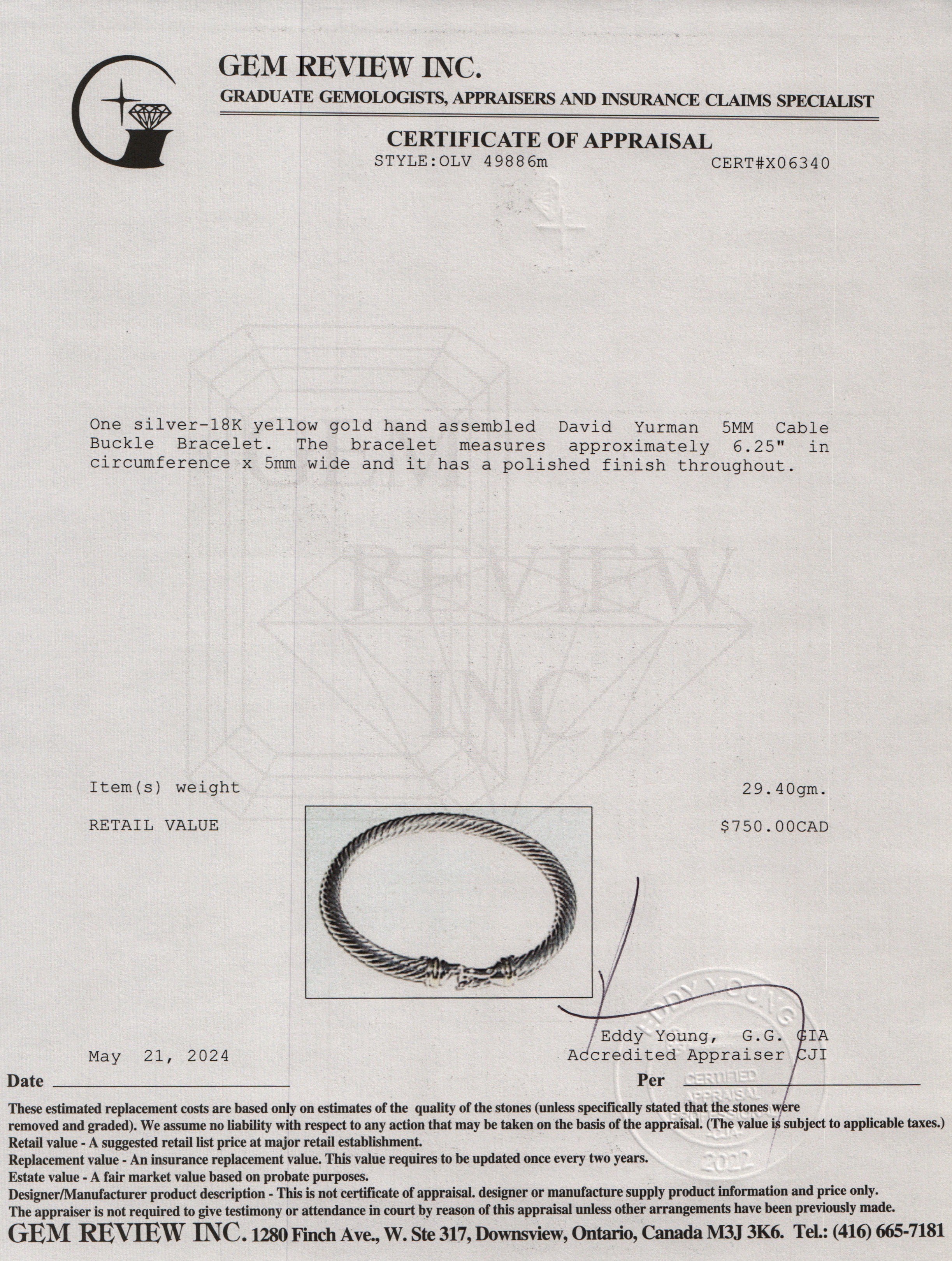 Sterling Silver & 18k Yellow Gold 5MM Cable Buckle Bracelet