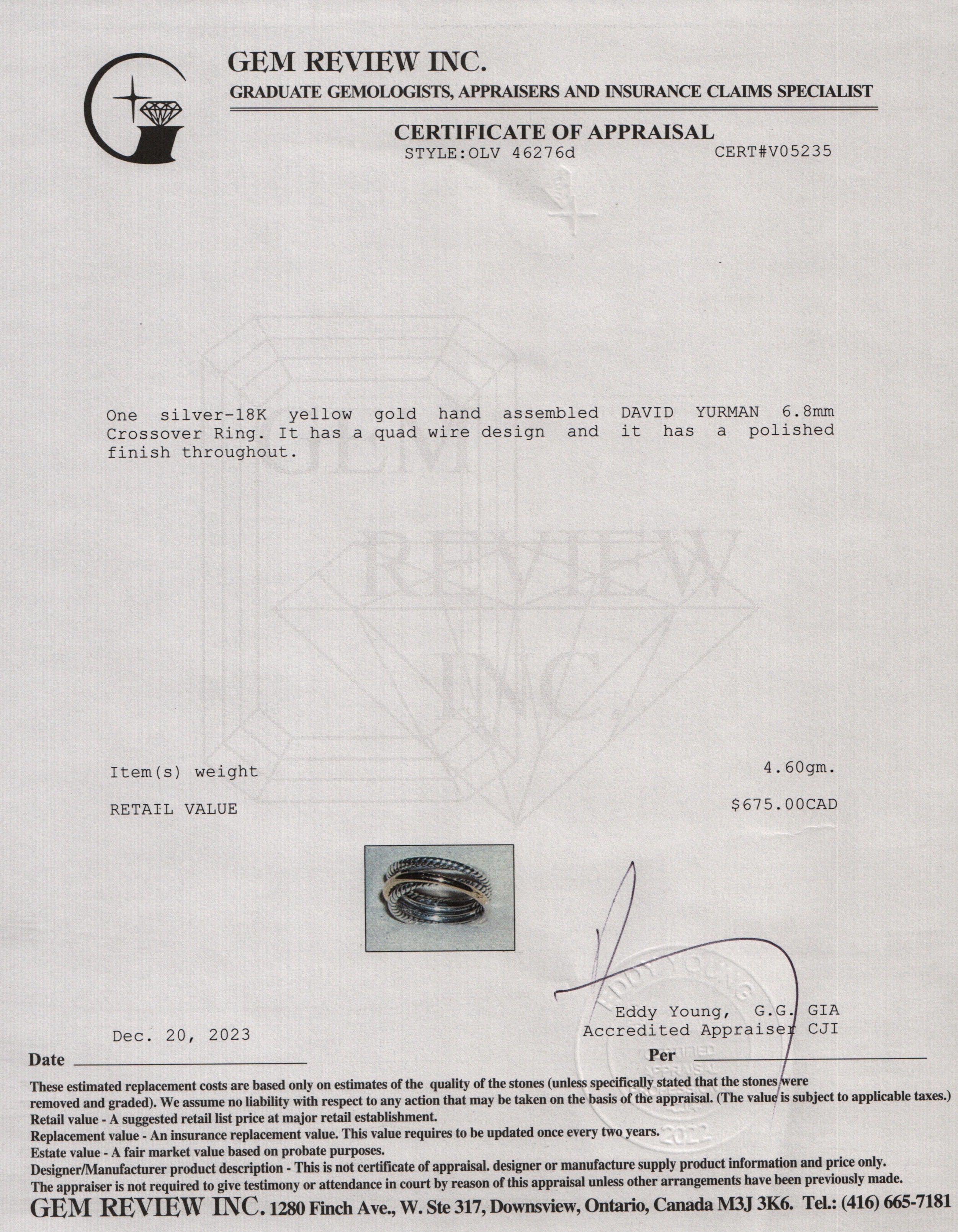 Sterling Silver & 18k Yellow Gold 6.8 MM Crossover Ring, Size 5