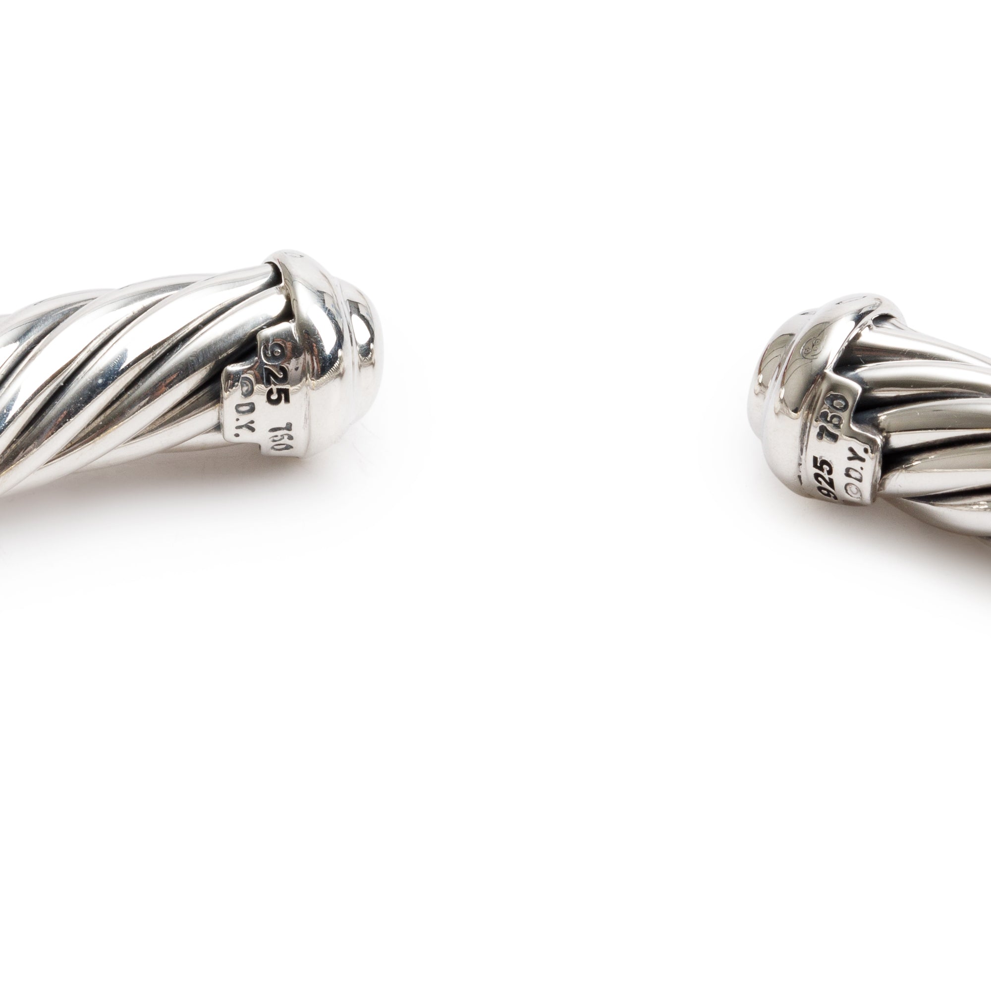 Sterling Silver & 18k Yellow Gold 7MM Classic Cable Diamond Station Cuff Bracelet w/ Box