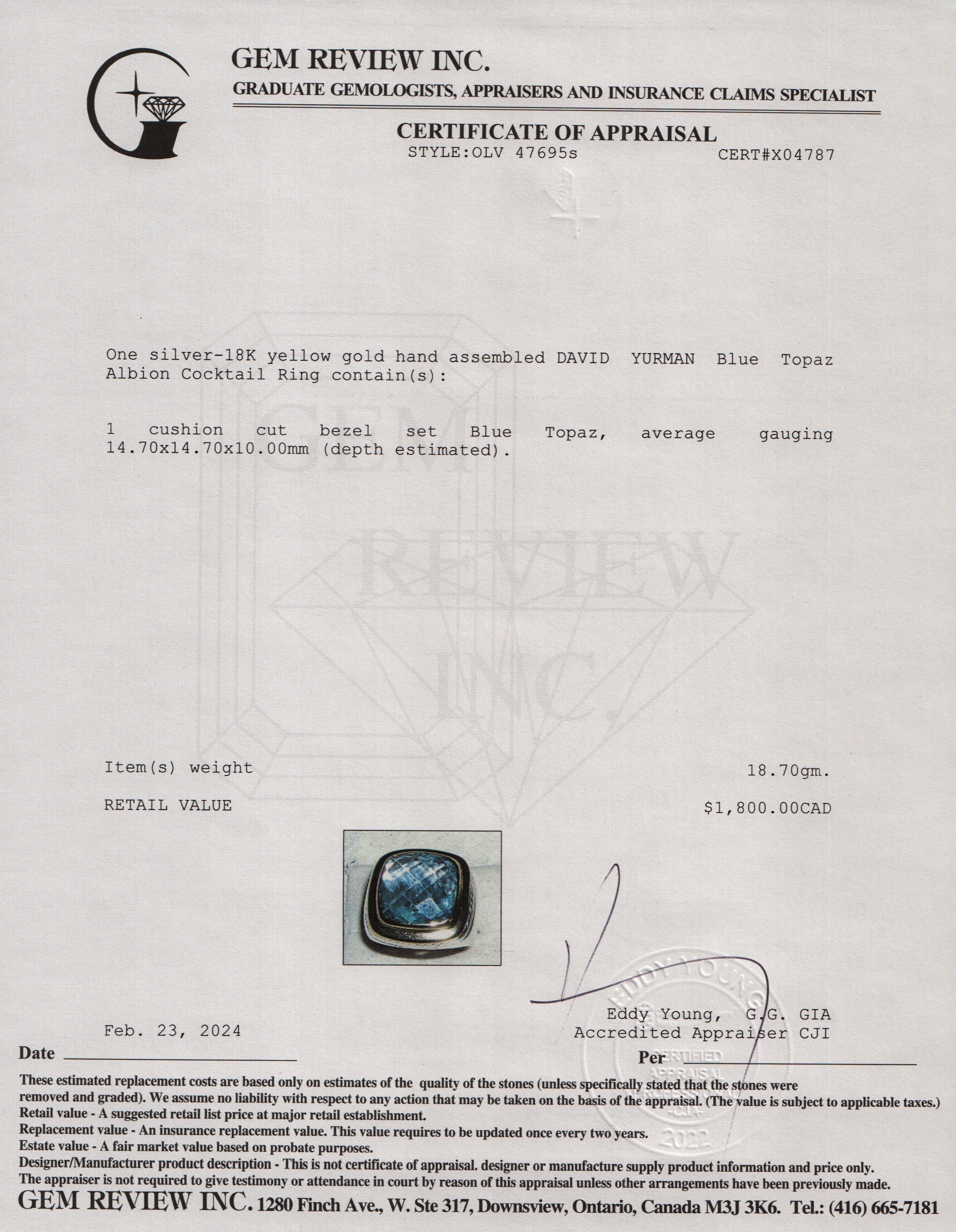 Sterling Silver & 18k Yellow Gold Blue Topaz Albion Cocktail Ring, Size 7