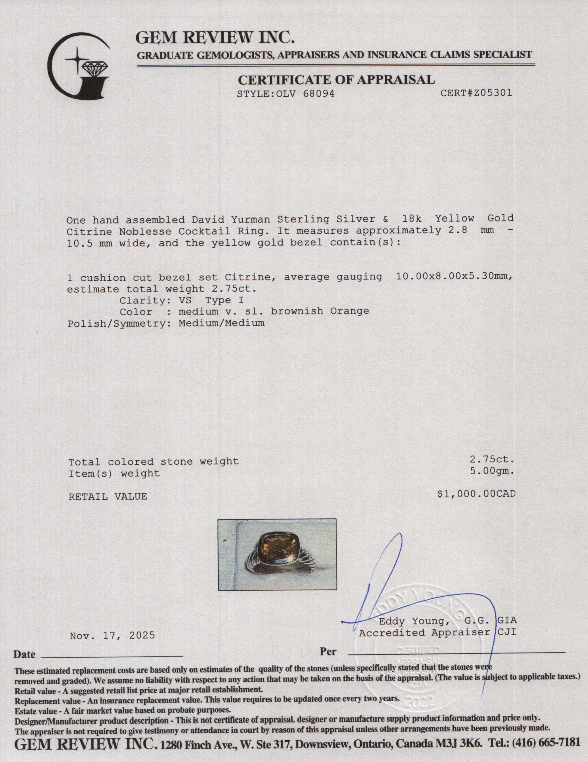 Sterling Silver & 18k Yellow Gold Citrine Noblesse Cocktail Ring, Size 6