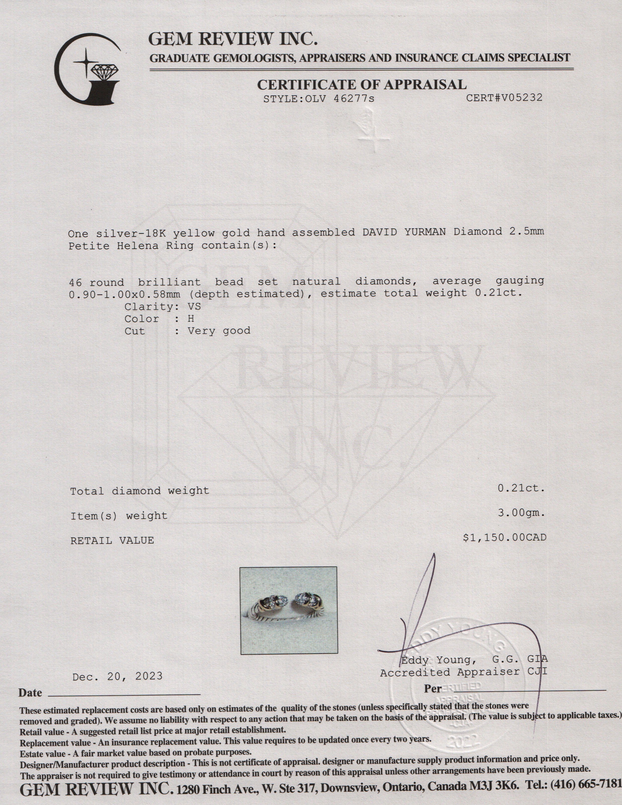 Sterling Silver & 18k Yellow Gold Diamond 2.5MM Petite Helena Ring, Size 5
