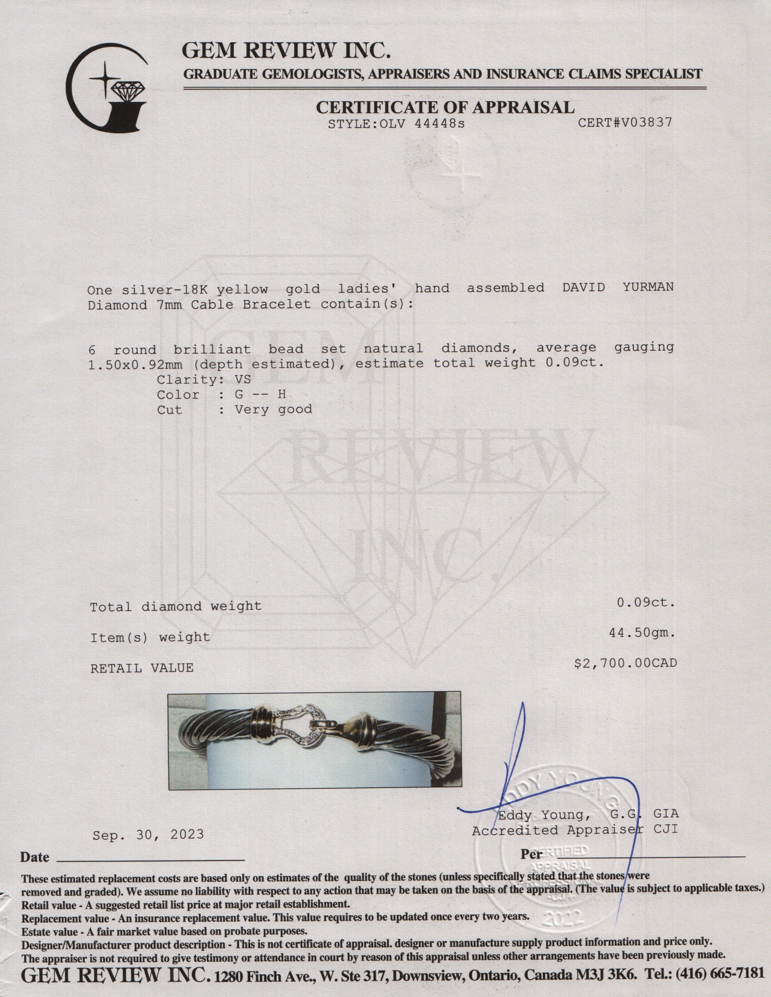 Sterling Silver & 18k Yellow Gold Diamond 7MM Cable Buckle Bracelet