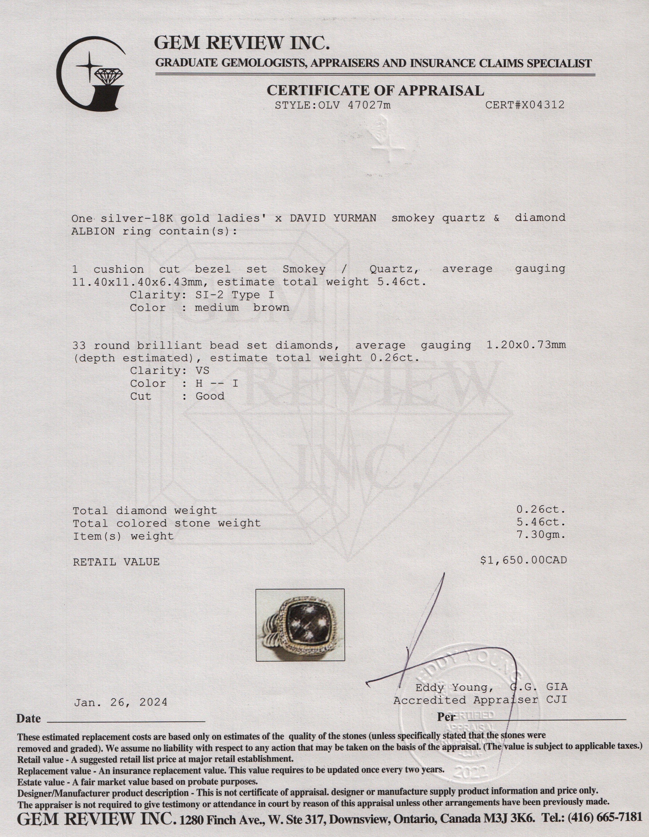 Sterling Silver & 18k Yellow Gold Smoky Quartz & Diamond Albion Ring, Size 5