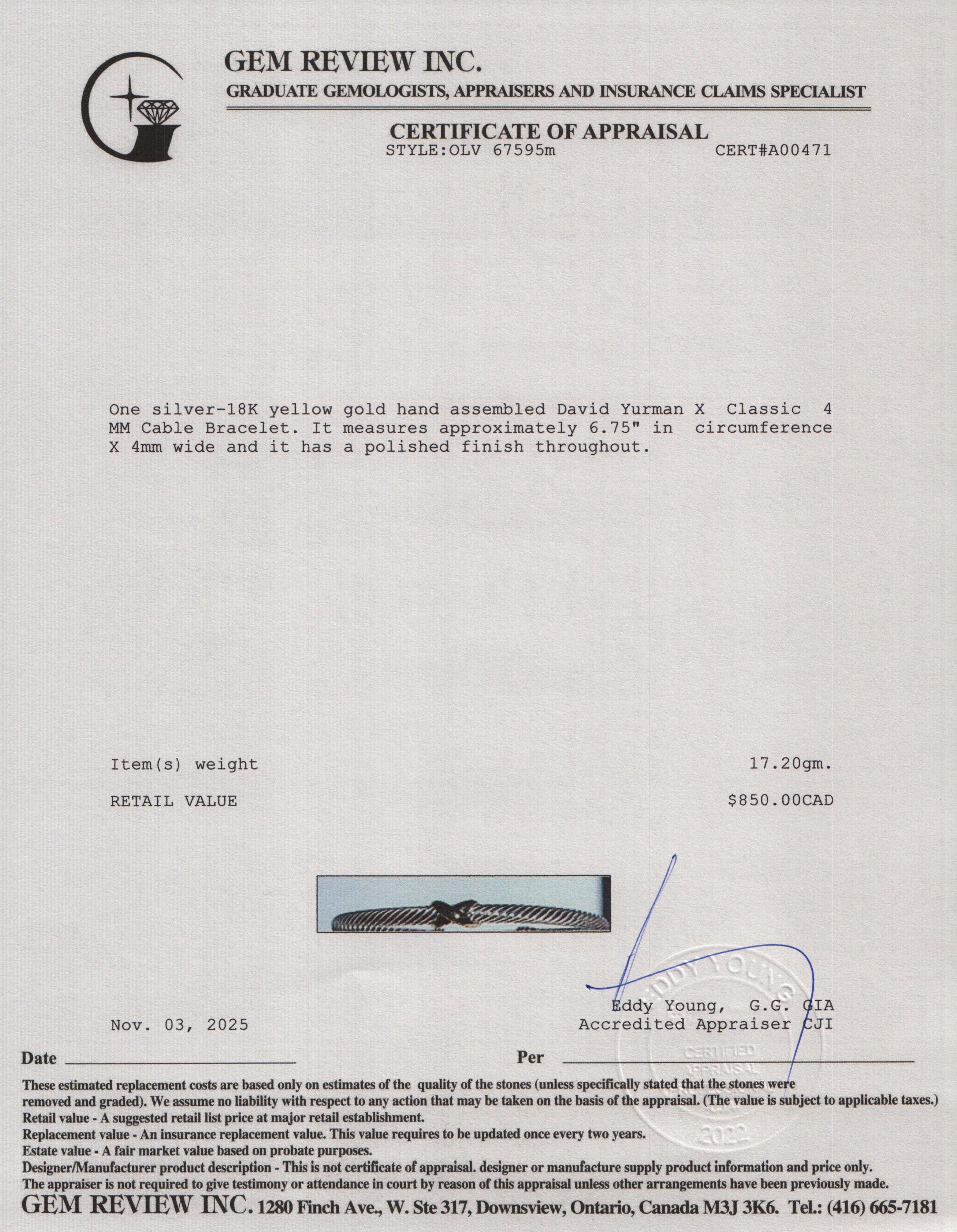 Sterling Silver & 18k Yellow Gold X Classic 4 MM Cable Bracelet