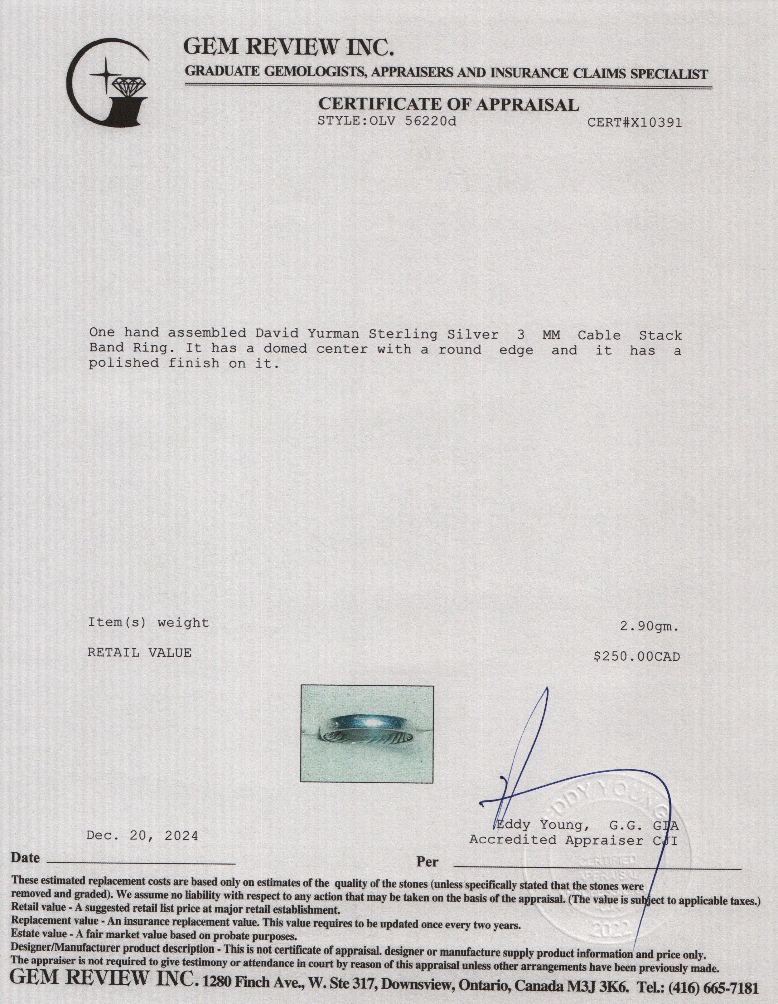 Sterling Silver 3 MM Cable Stack Band Ring, Size 5.75