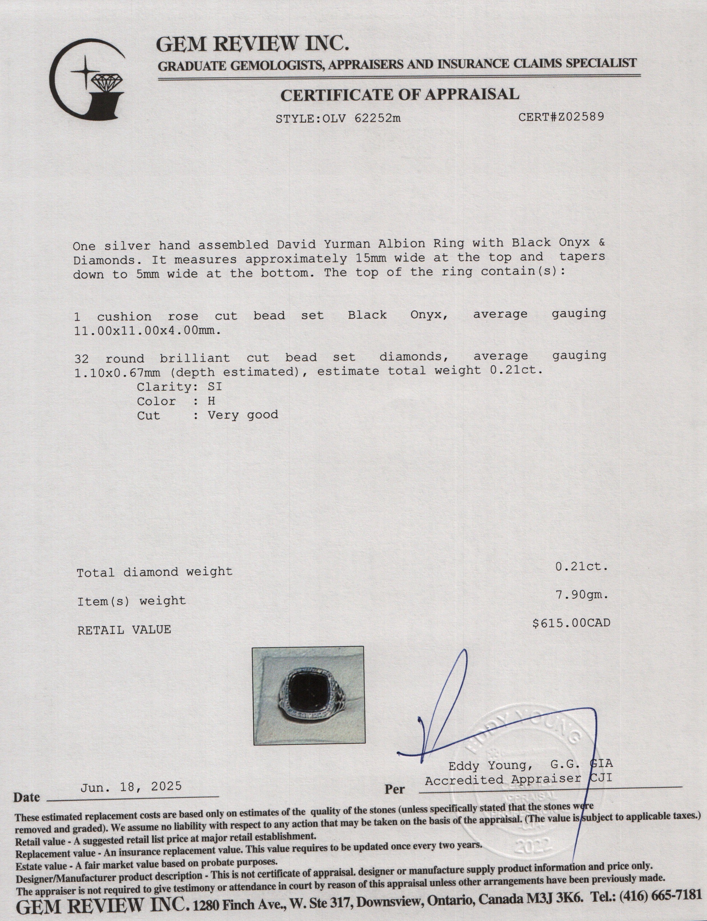 Sterling Silver Albion Ring with Black Onyx & Diamonds, 11 MM Size 6