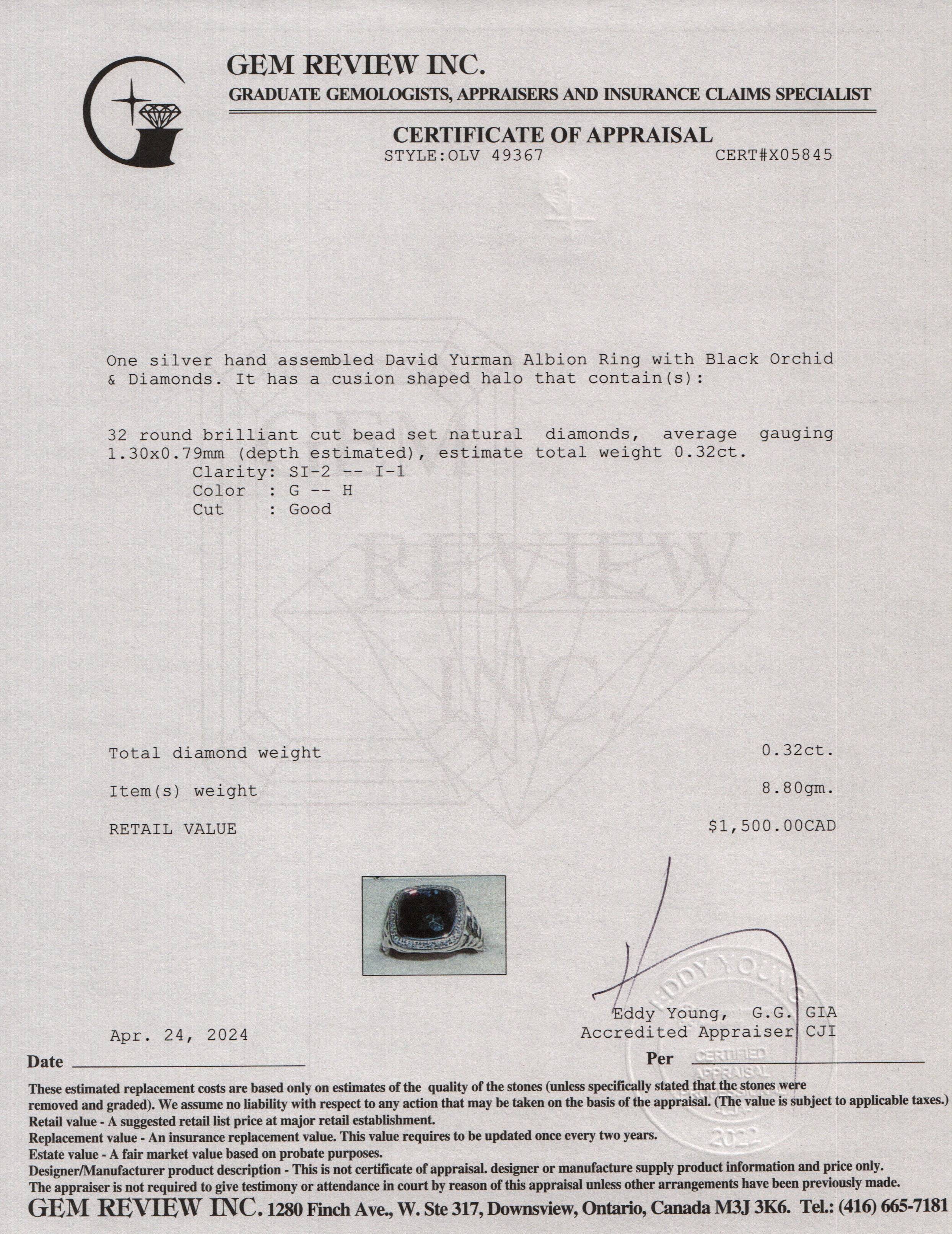Sterling Silver Albion Ring with Black Orchid & Diamonds, Size 6