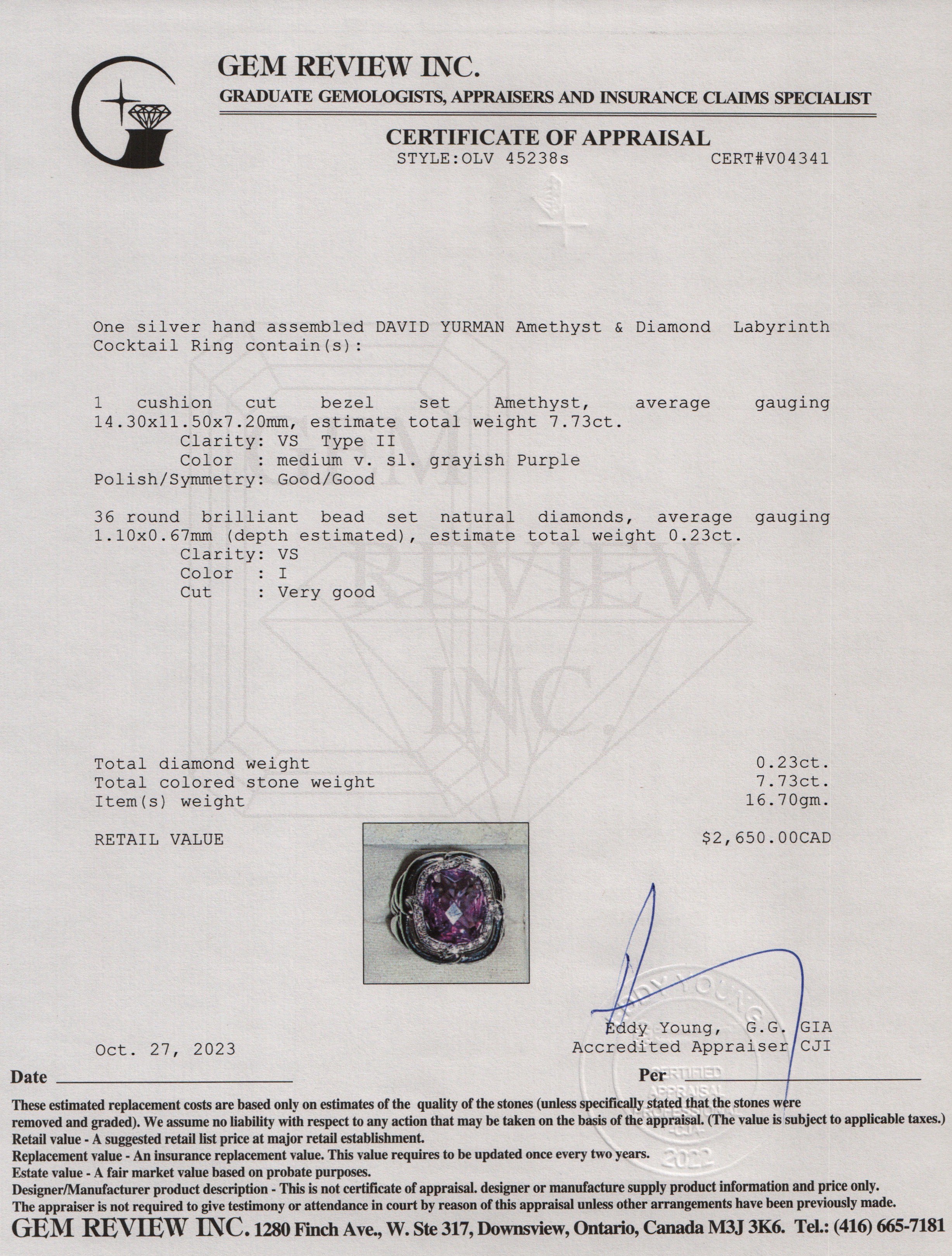 Sterling Silver Amethyst & Diamond Labyrinth Cocktail Ring, Size 5.5