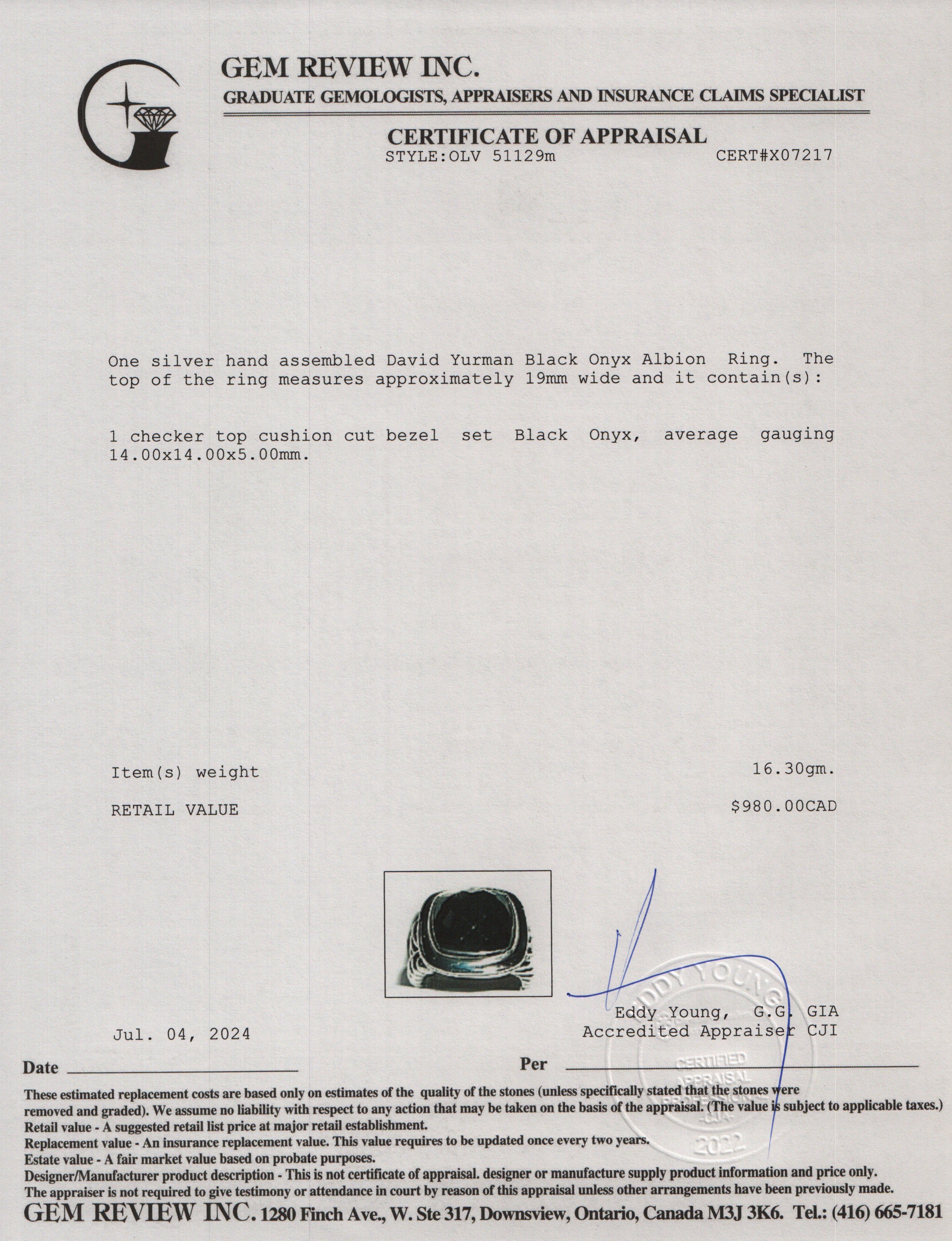 Sterling Silver Black Onyx Albion Ring, Size 6