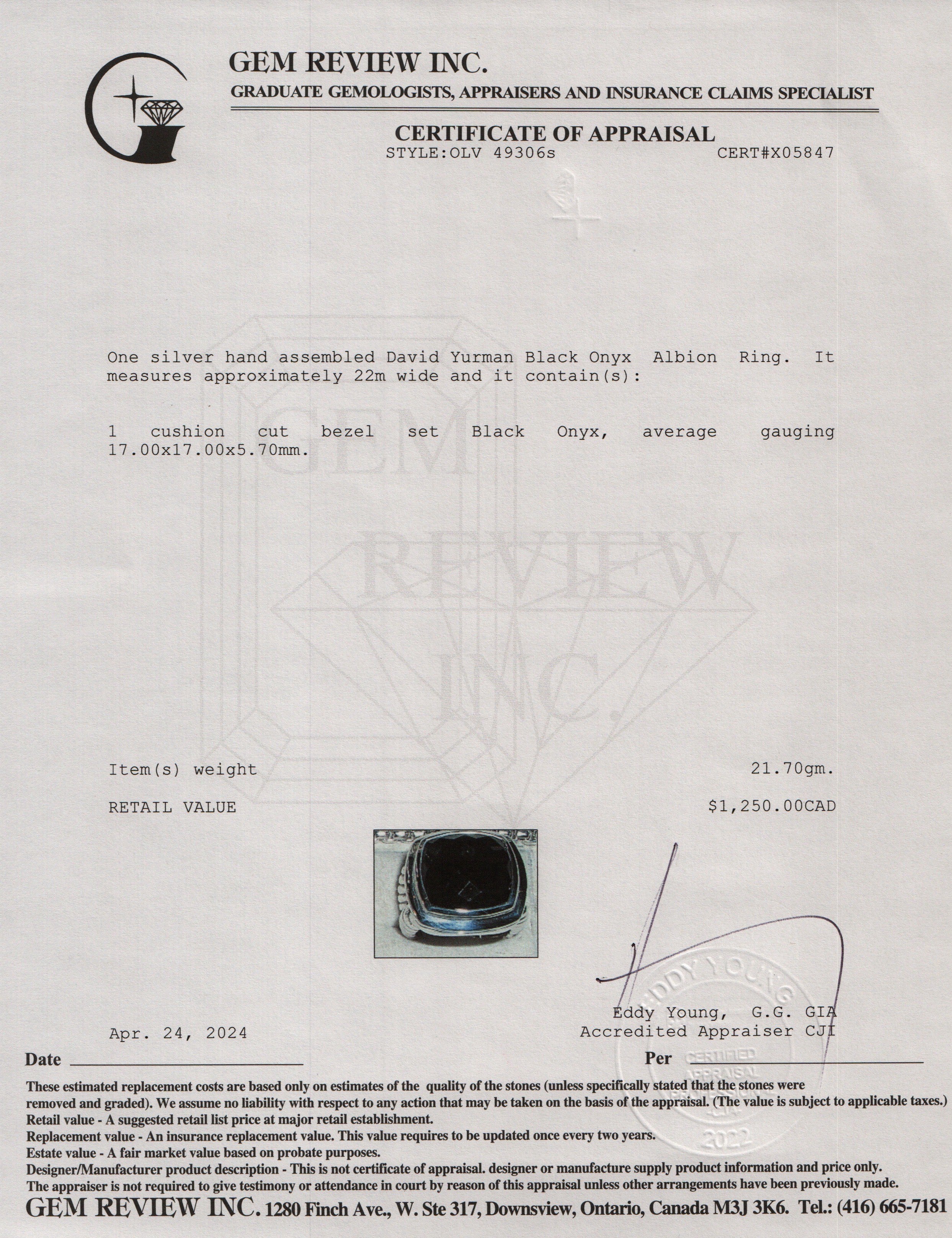 Sterling Silver Black Onyx Albion Ring, Size 7.75
