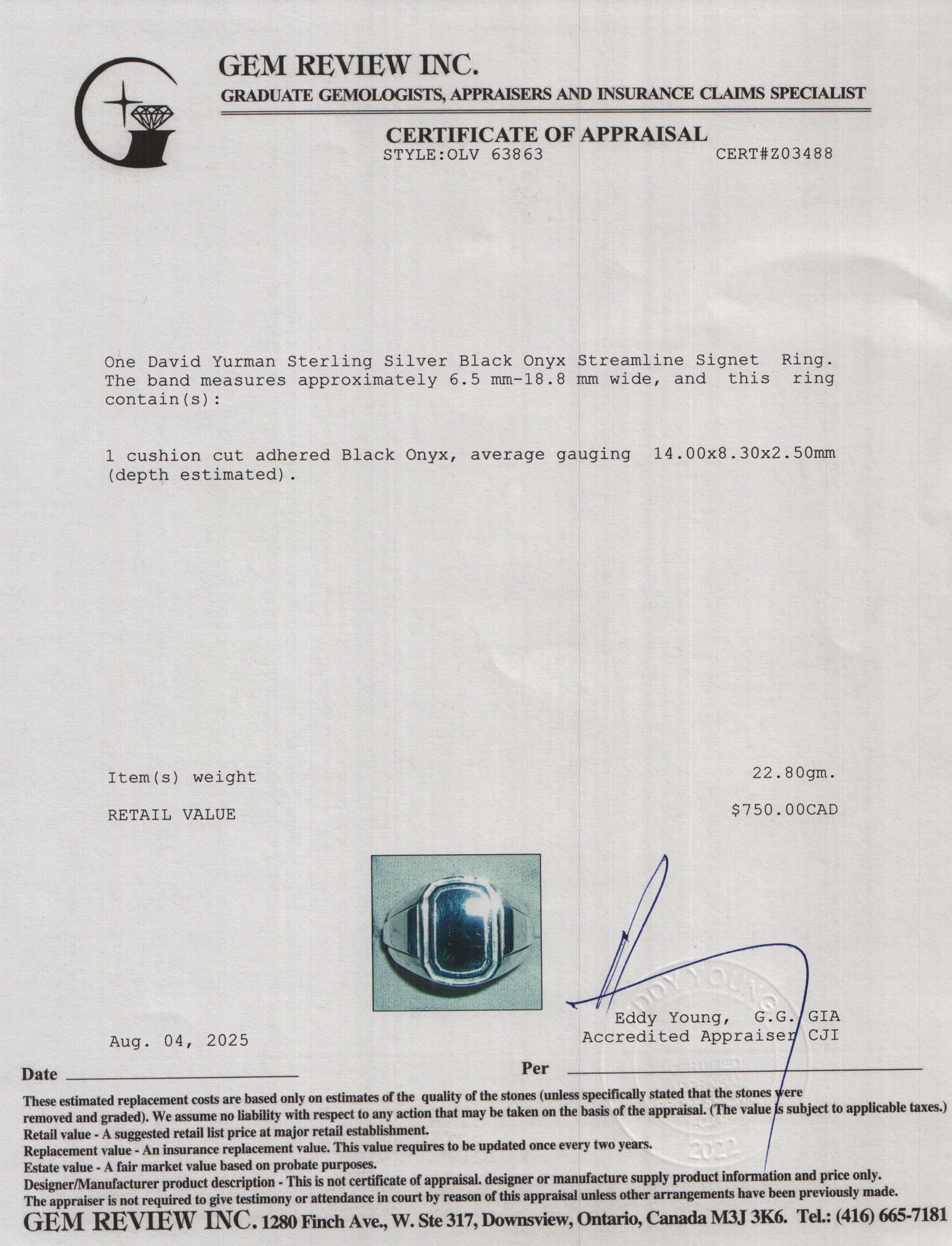 Sterling Silver Black Onyx Streamline Signet Ring, 18.8 MM Size 12