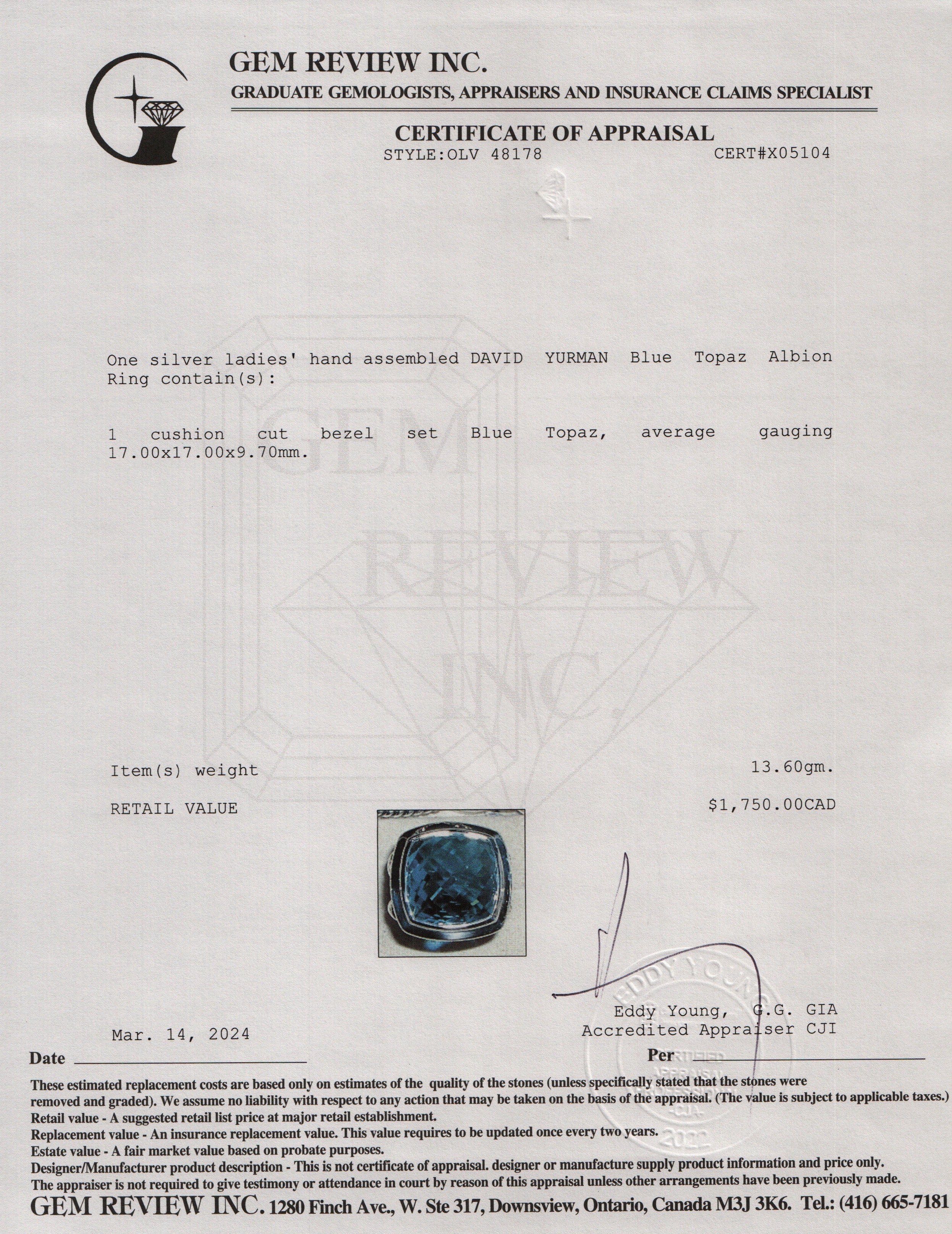 Sterling Silver Blue Topaz Albion Ring, Size 6.25