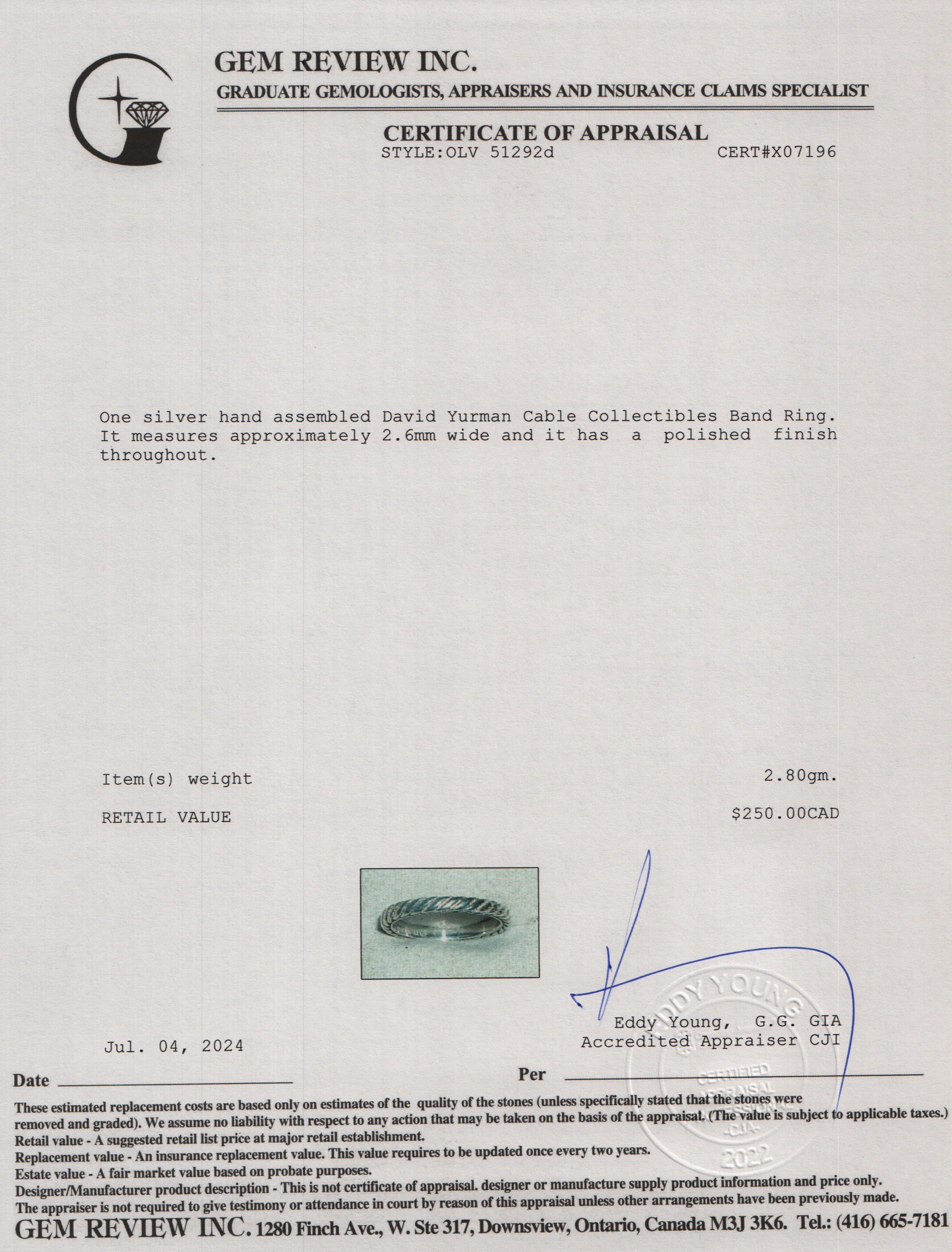 Sterling Silver Cable Collectibles Band Ring, Size 8
