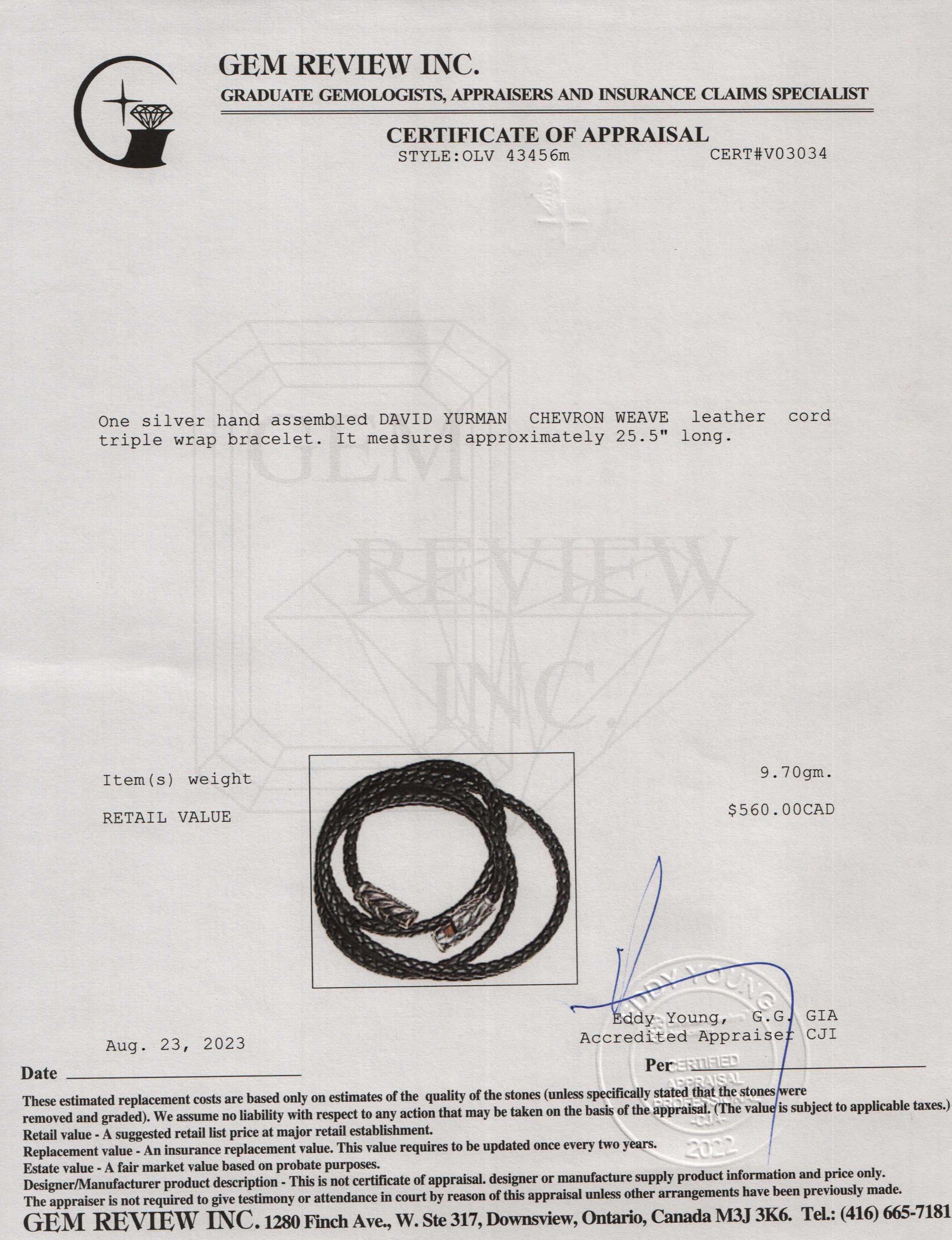 Sterling Silver Chevron Triple-Wrap Leather Bracelet