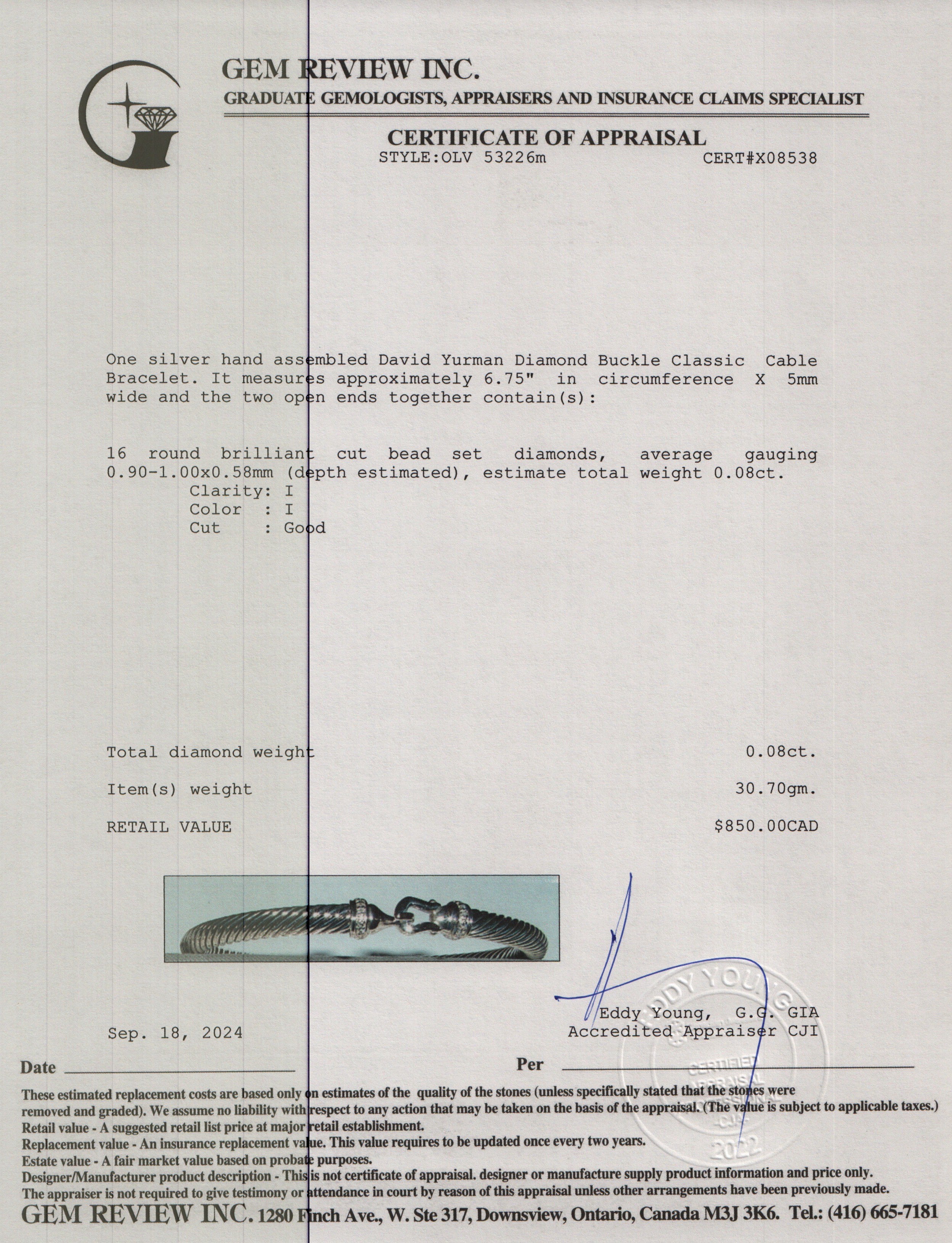 Sterling Silver Diamond 5MM Buckle Classic Cable Bracelet