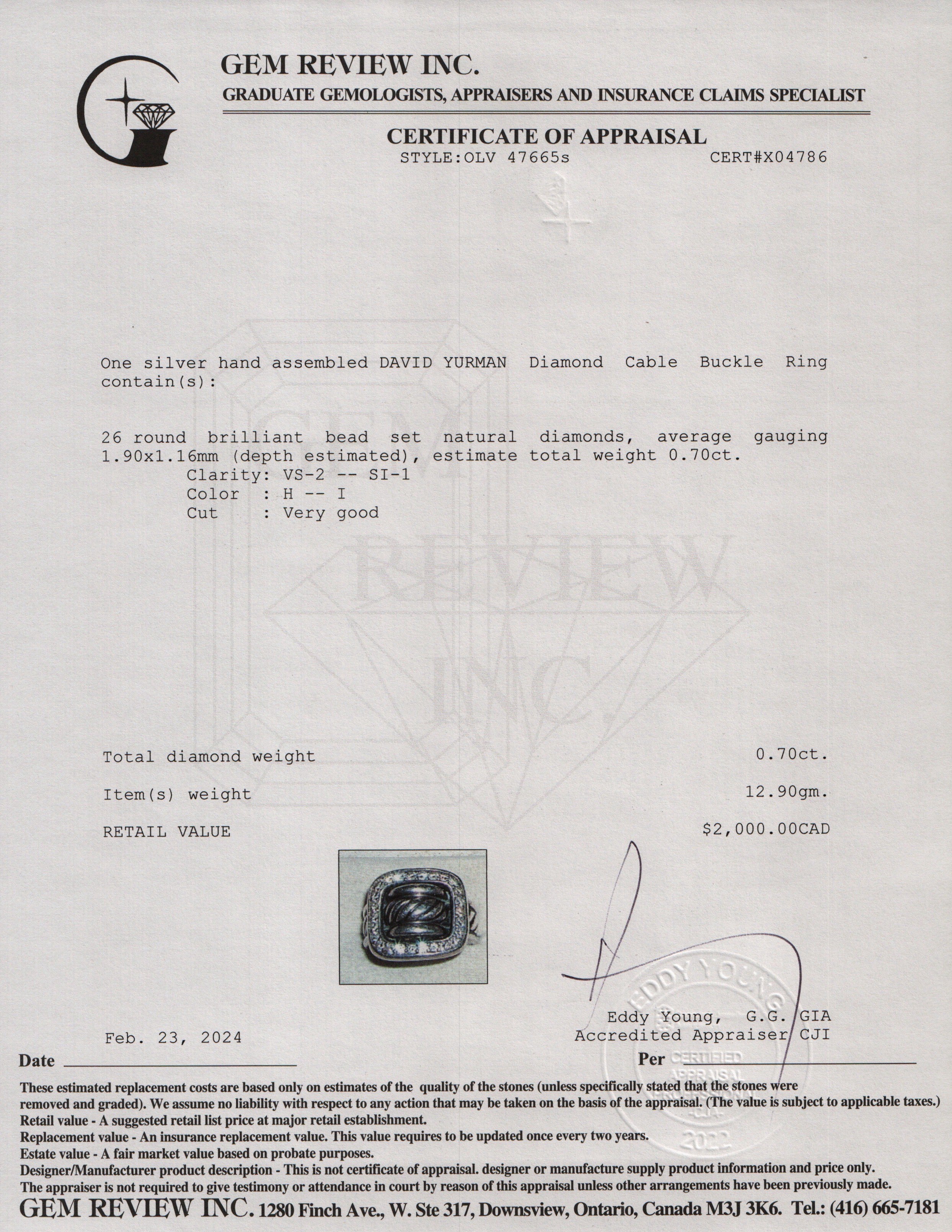 Sterling Silver Diamond Cable Buckle Ring, Size 5.75
