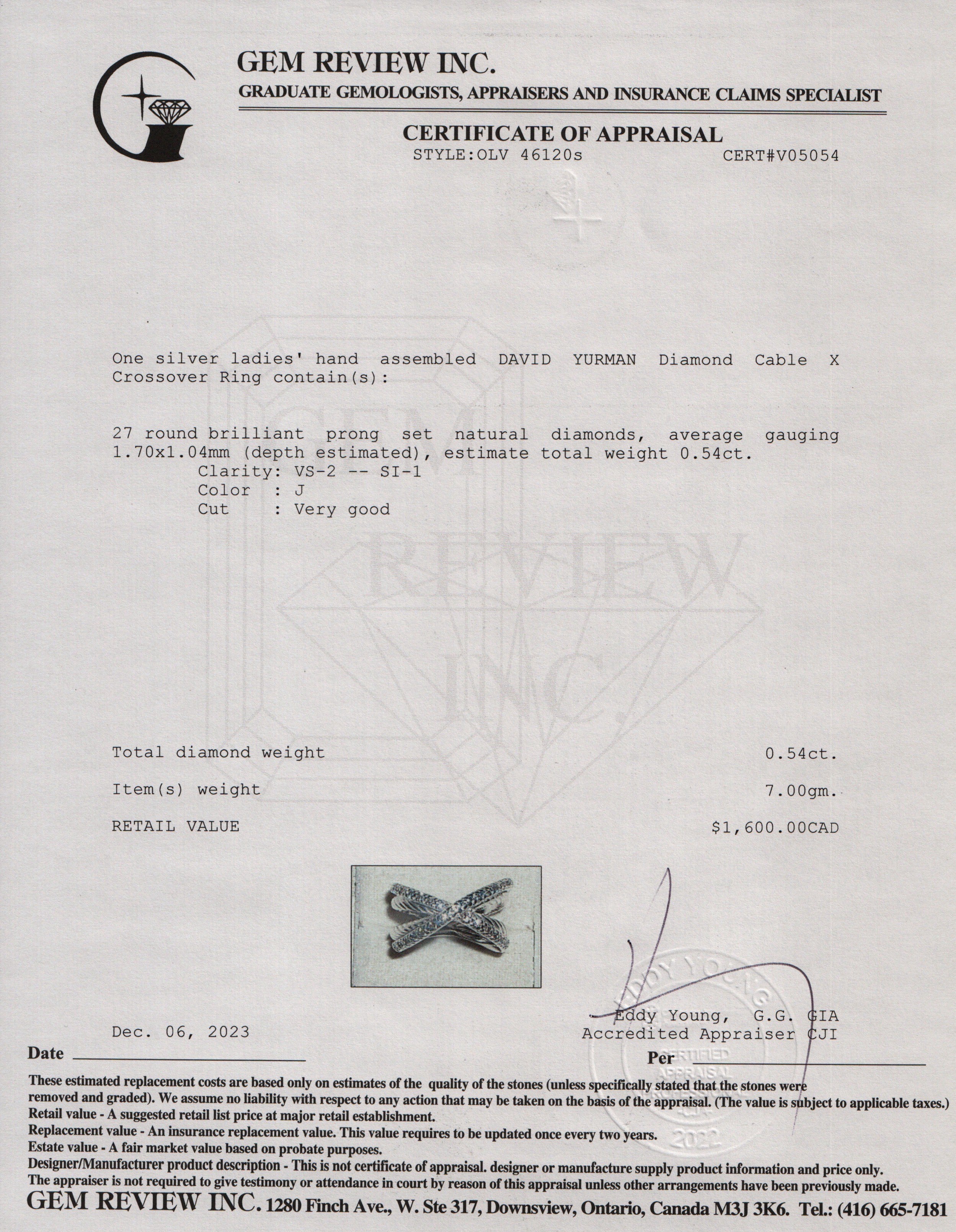 Sterling Silver Diamond Cable 'X' Crossover Ring, Size 6.75