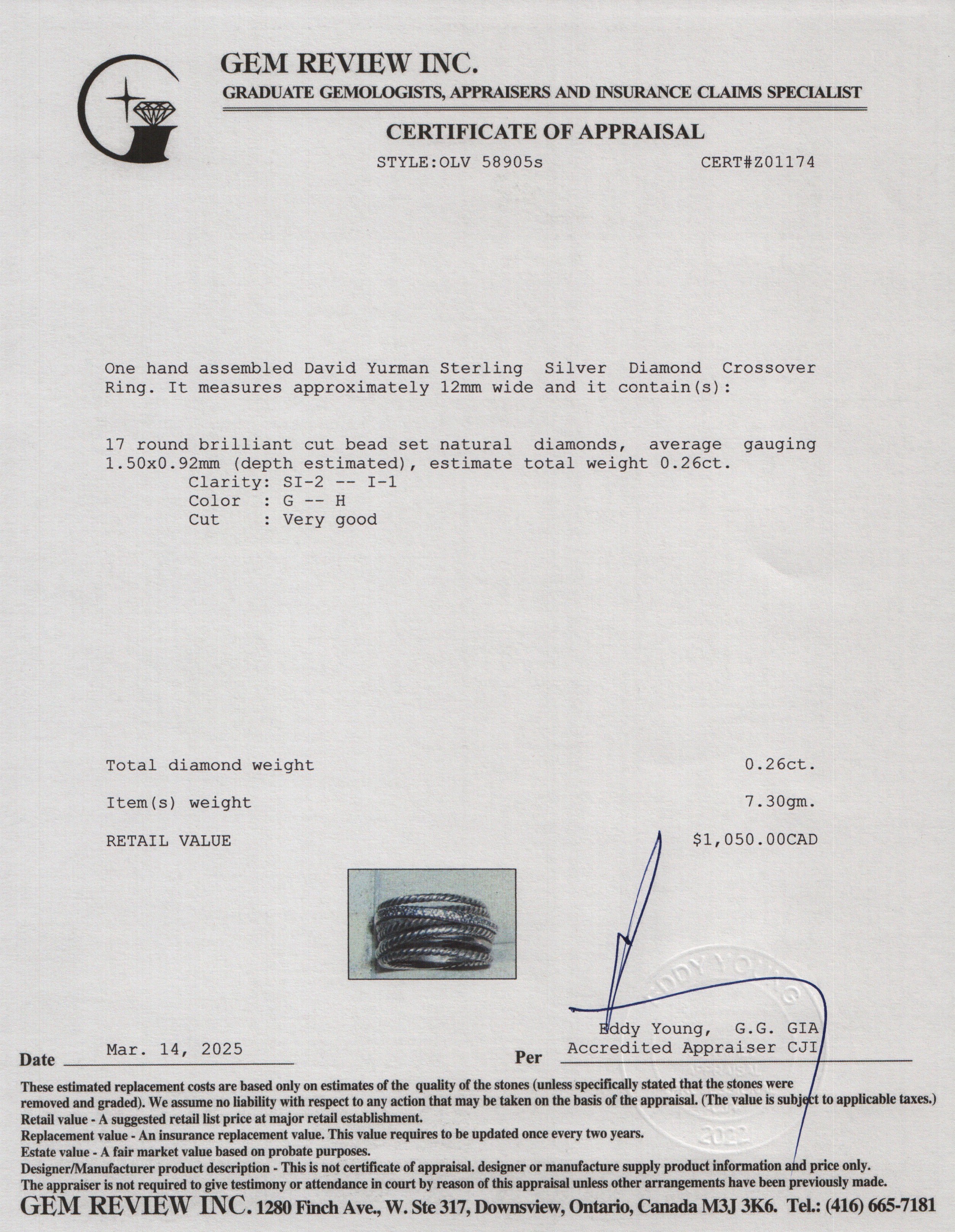 Sterling Silver Diamond Crossover Ring, Size 6.75