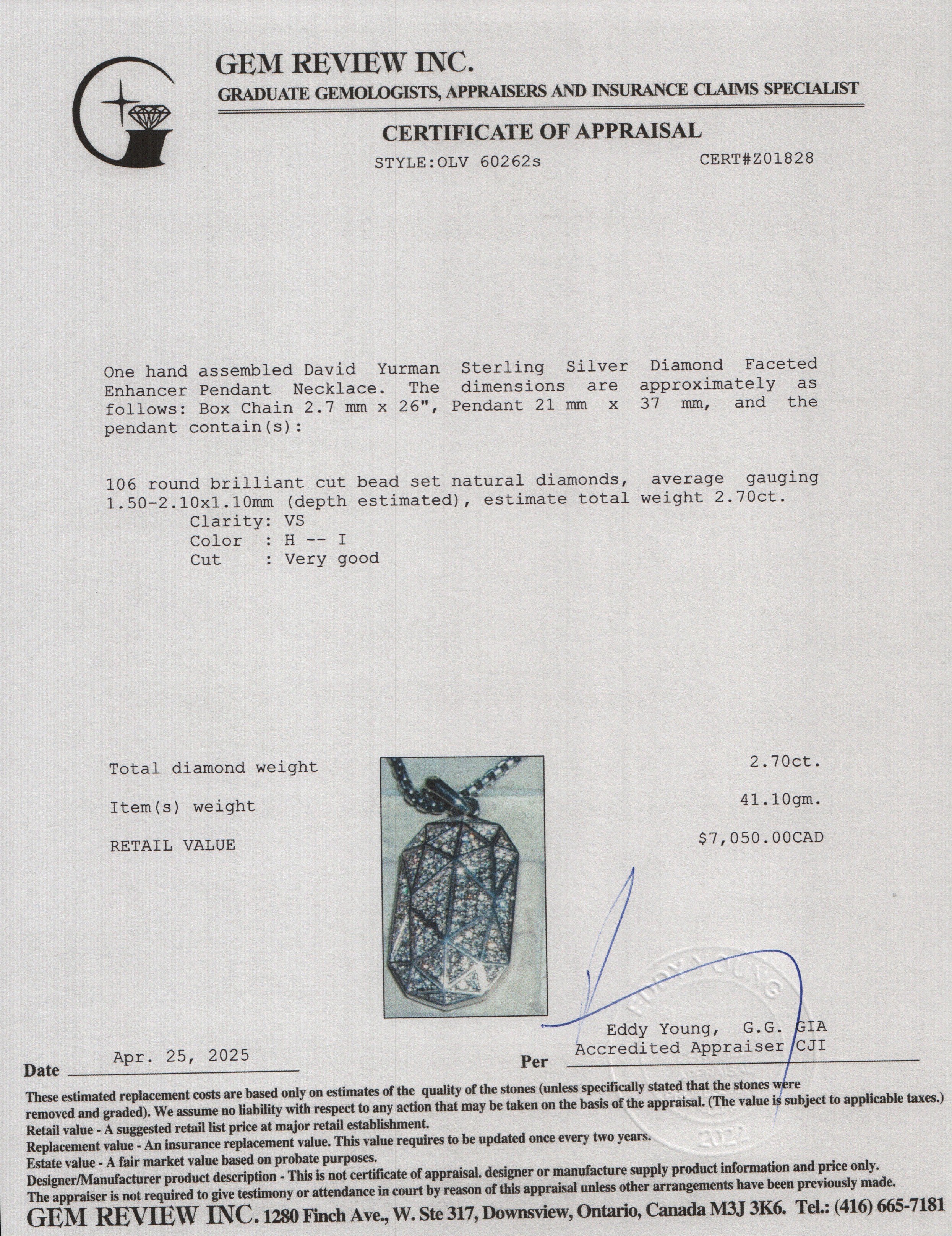 Sterling Silver Diamond Faceted Enhancer Pendant Necklace