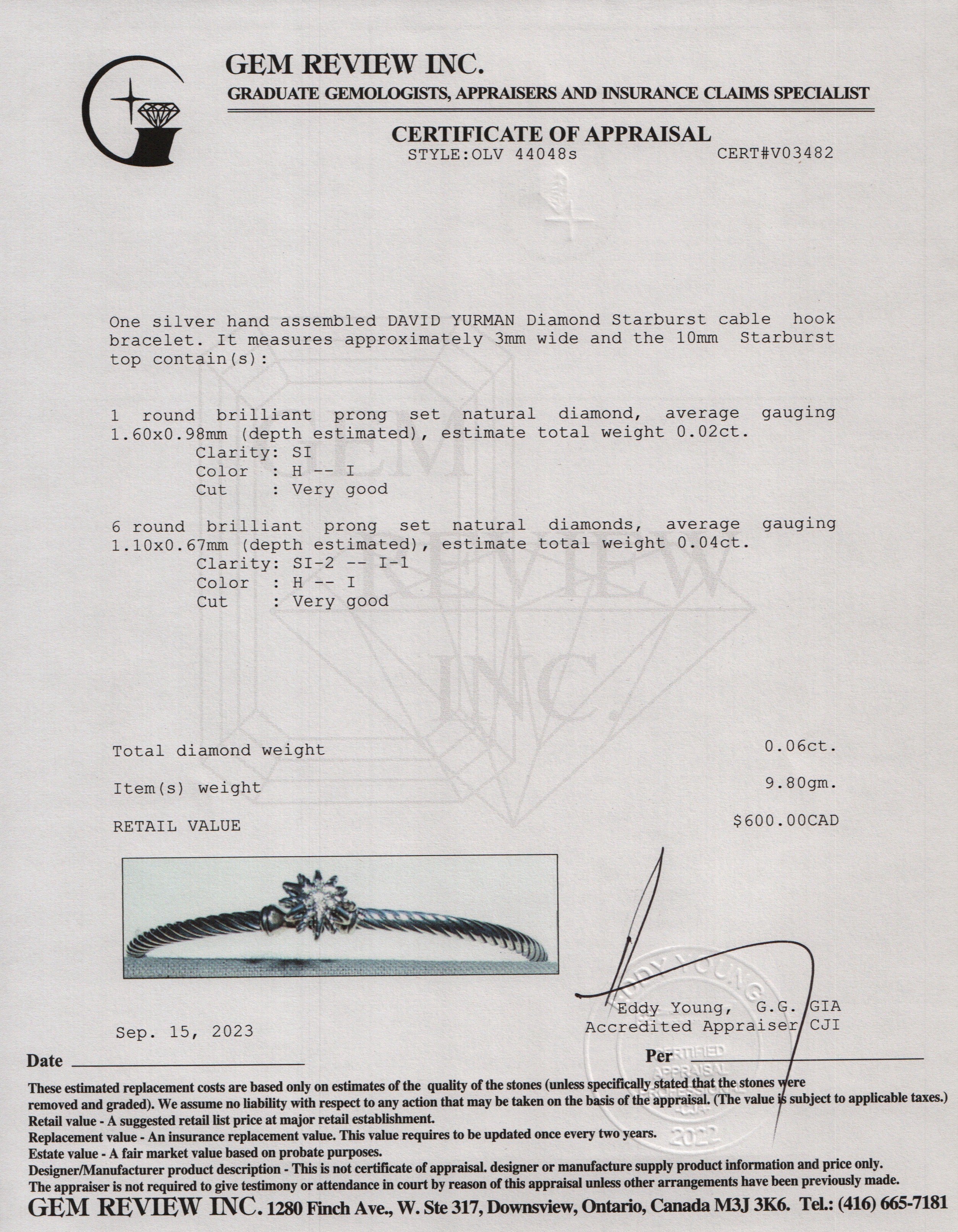 Sterling Silver Diamond Starburst 3MM Cable Hook Bracelet