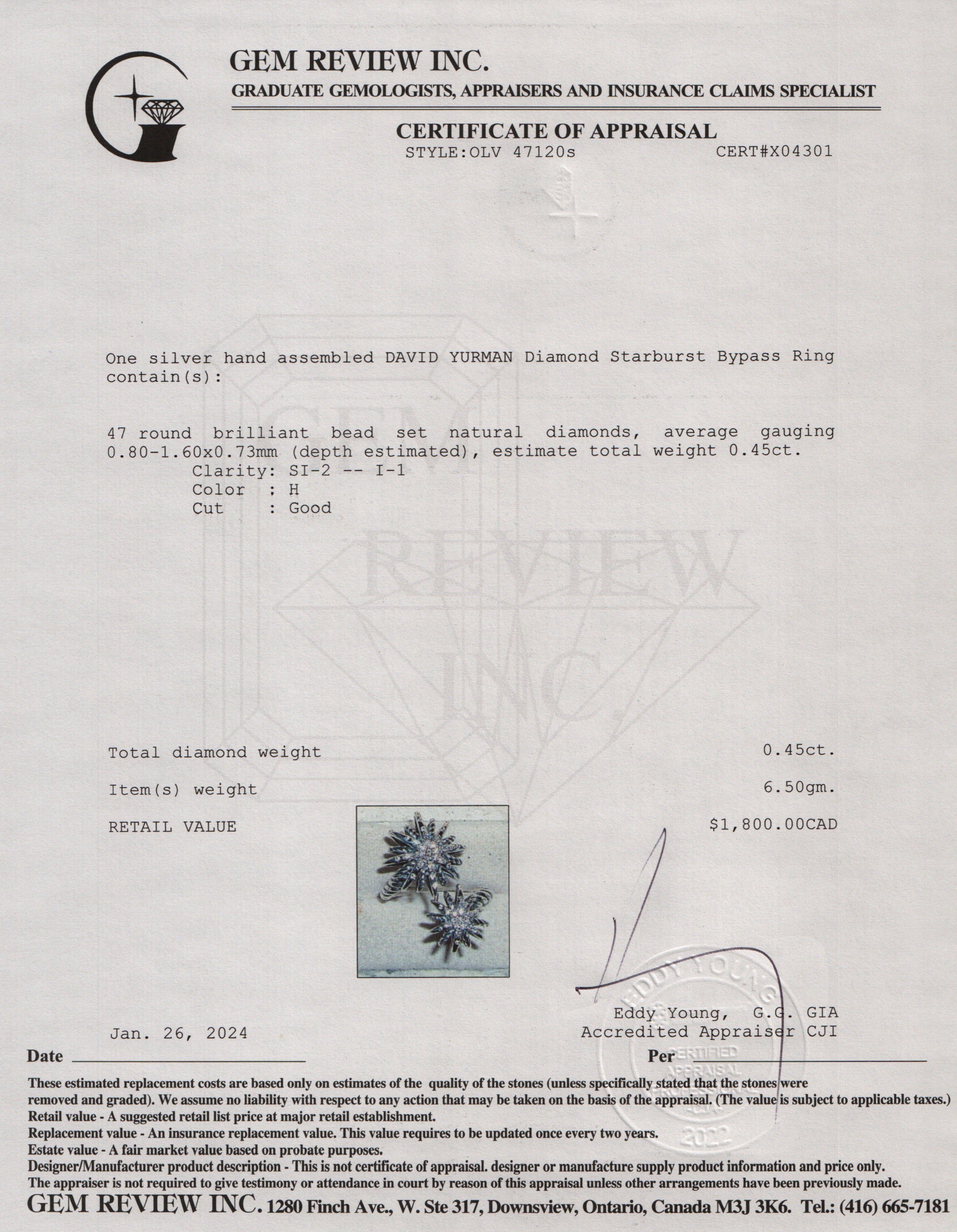 Sterling Silver Diamond Starburst Bypass Ring, Size 7.5