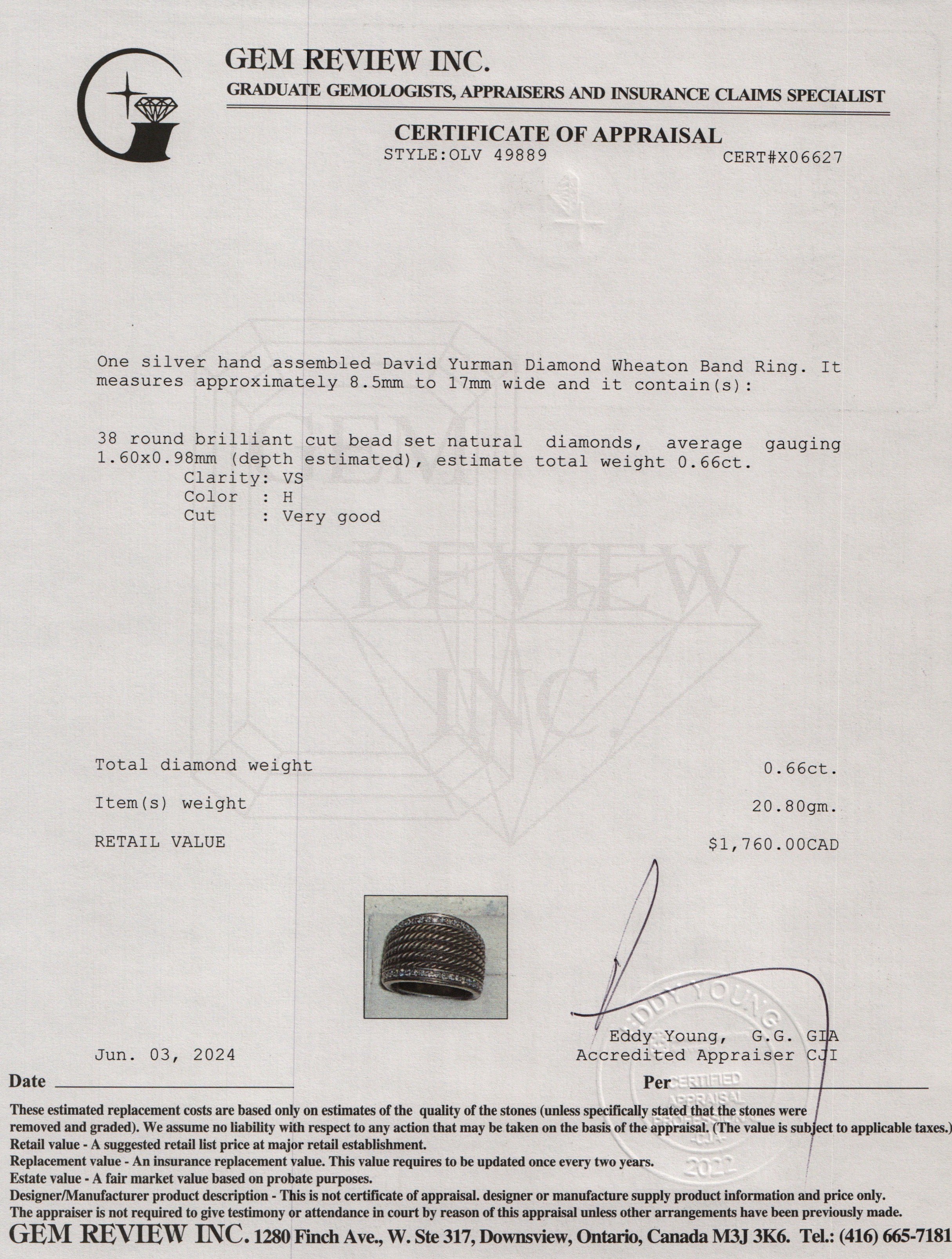 Sterling Silver Diamond Wheaton Band Ring, Size 7