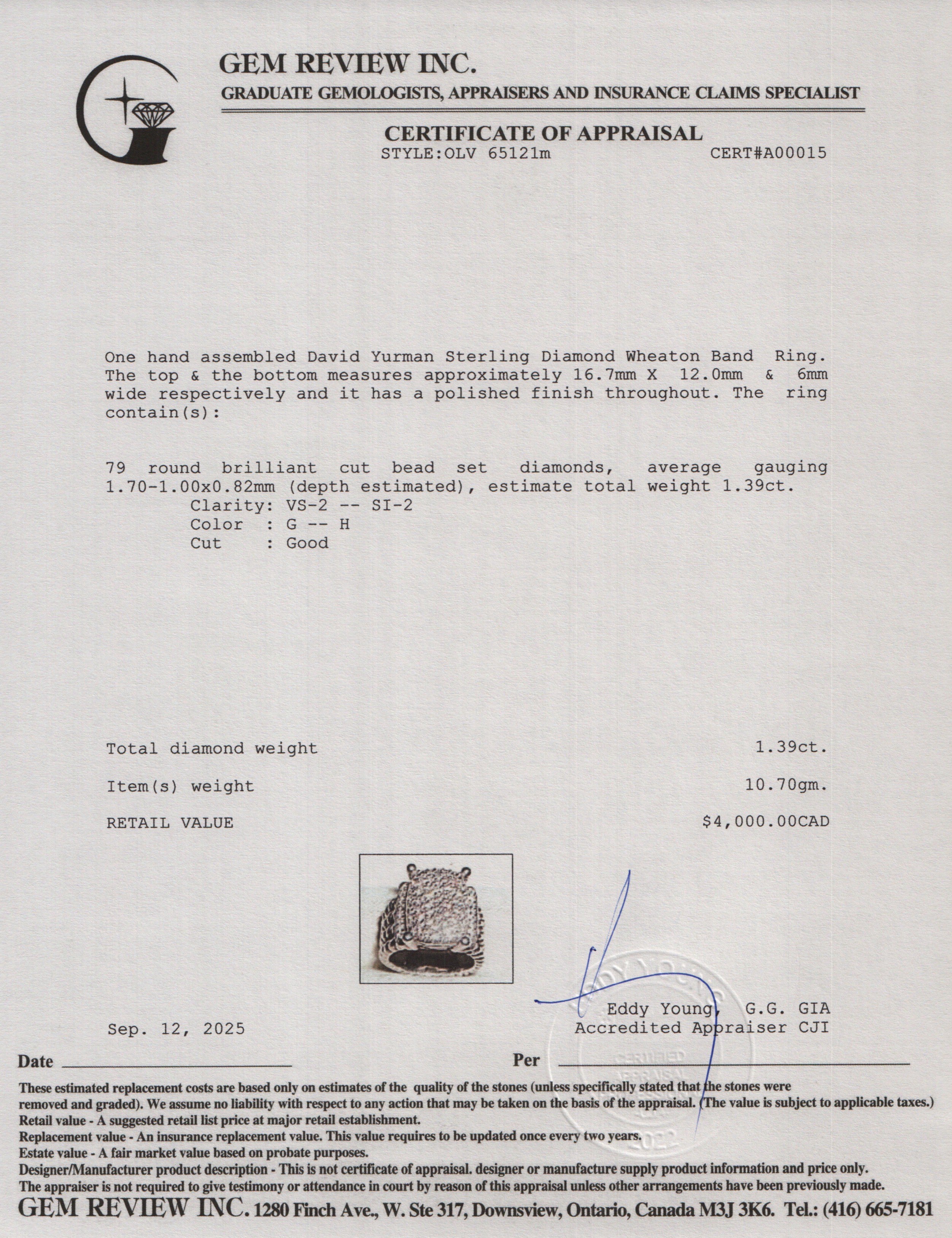Sterling Silver Diamond Wheaton Ring, 16.7 MM Size 6.75