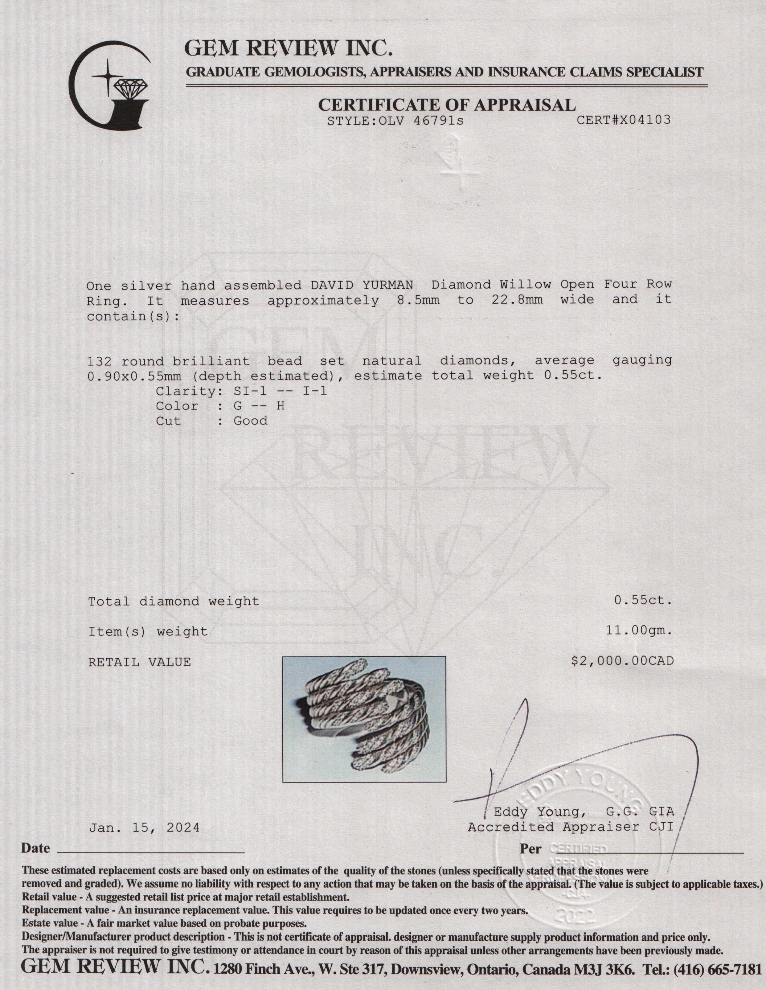 Sterling Silver Diamond Willow Open Four-Row Ring, Size 8