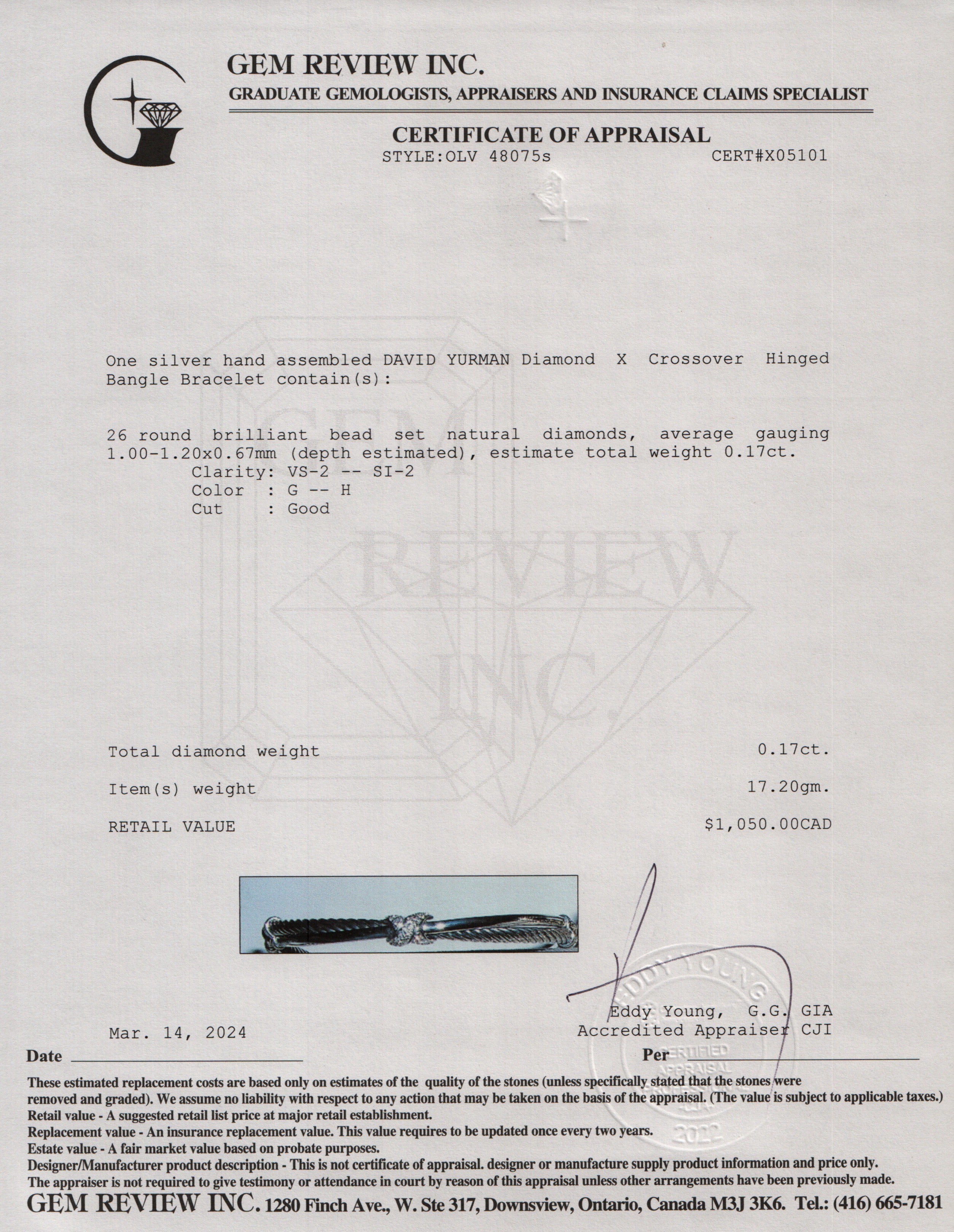 Sterling Silver Diamond X Crossover Hinged Bangle Bracelet