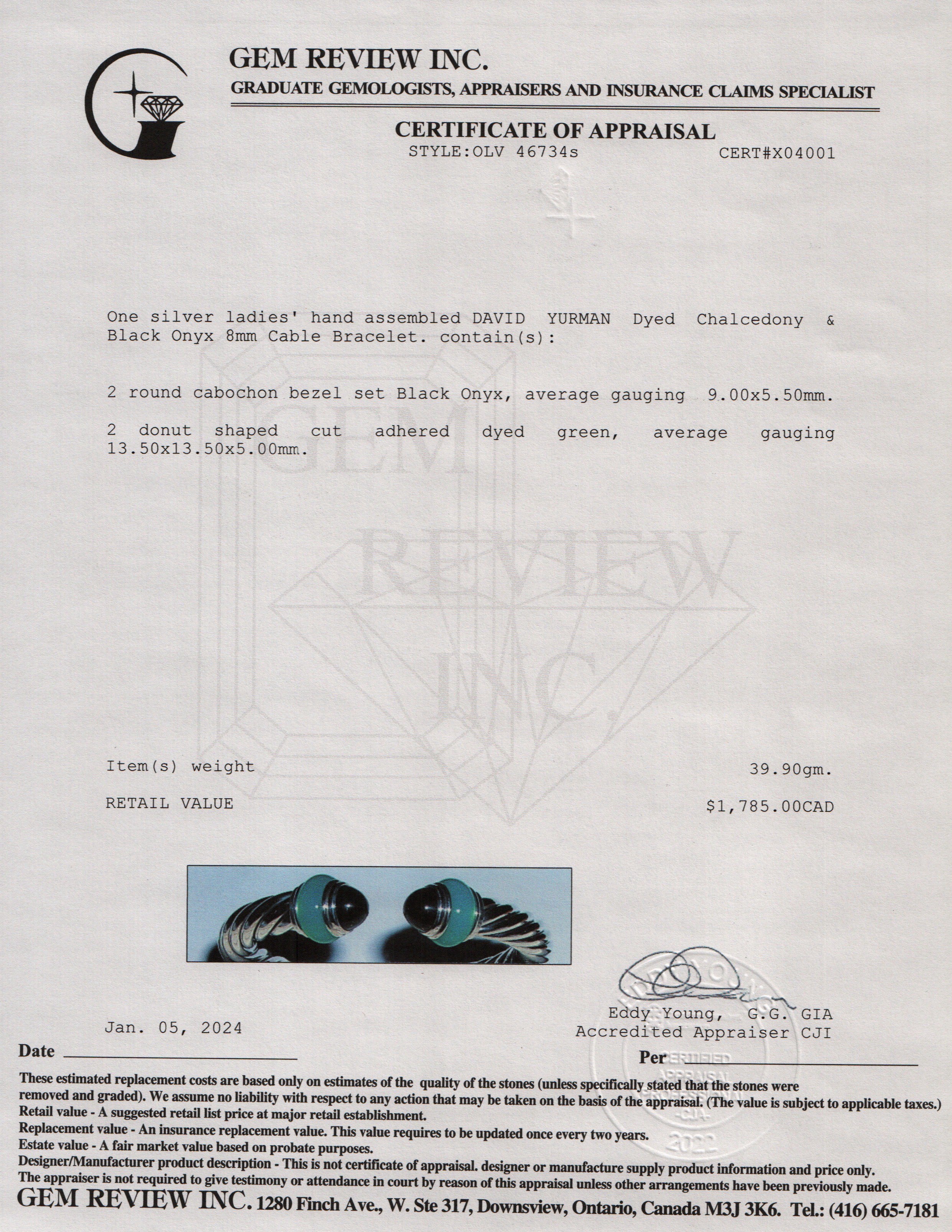 Sterling Silver Dyed Chalcedony & Black Onyx 8 MM Cable Bracelet