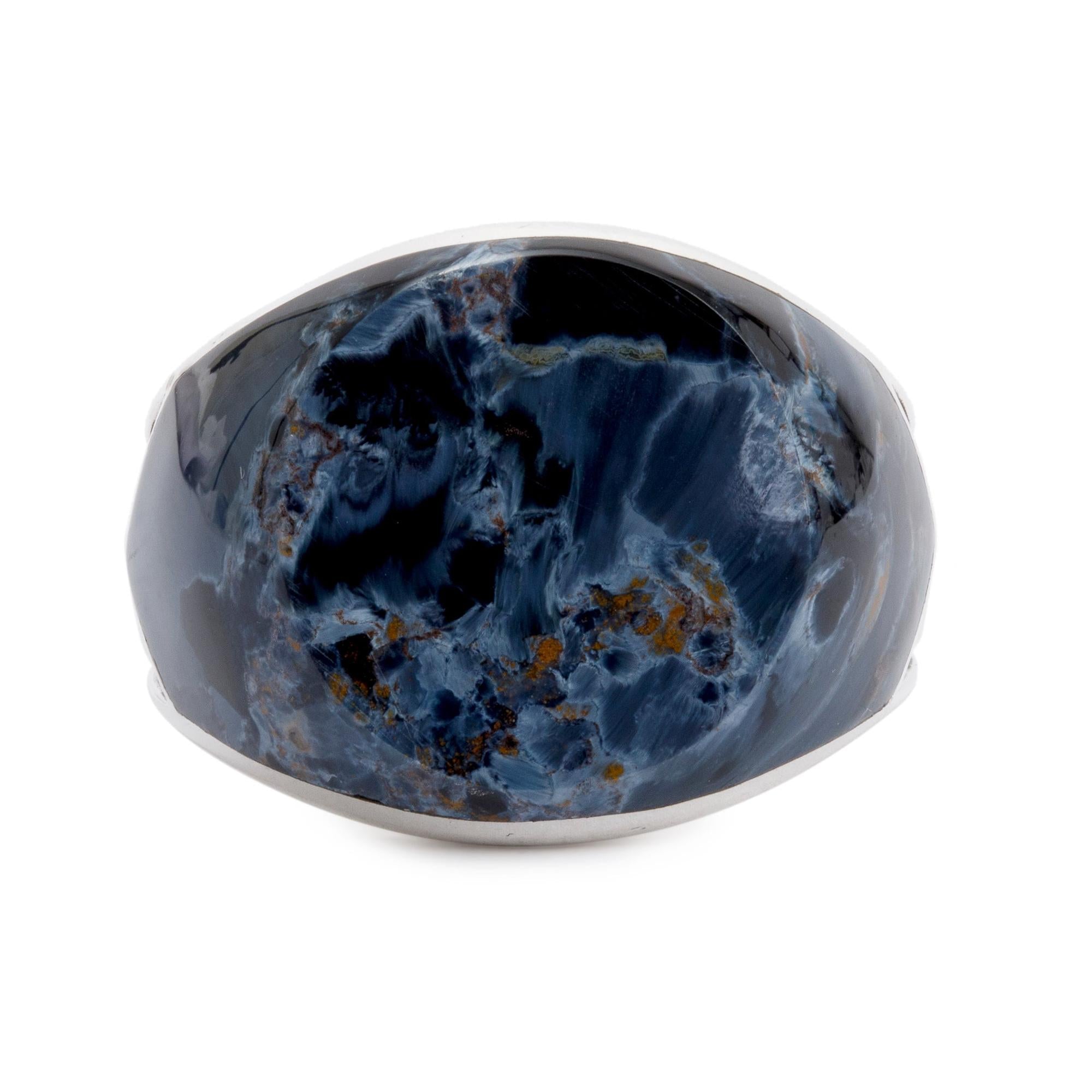 Sterling Silver Exotic Stone Signet Ring with Pietersite, Size 8