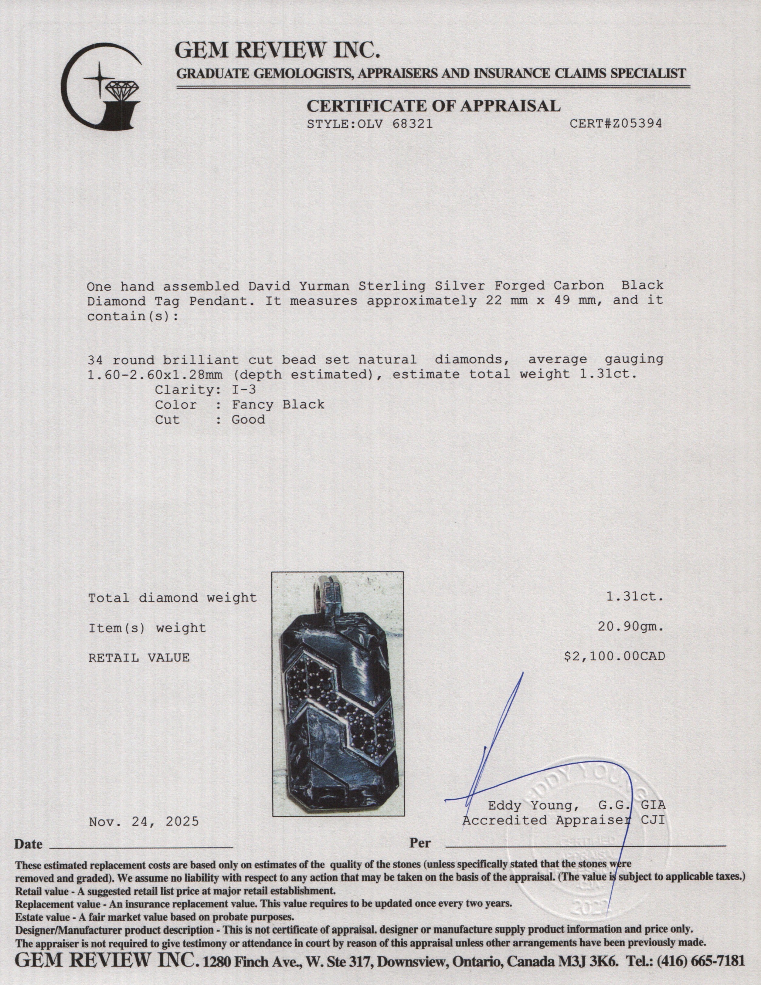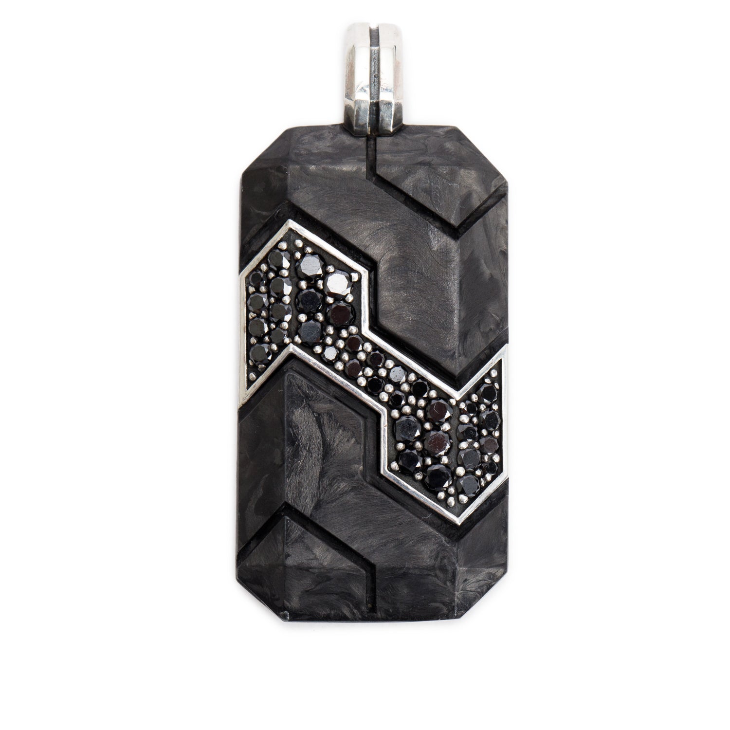 Sterling Silver Forged Carbon Black Diamond Tag Pendant
