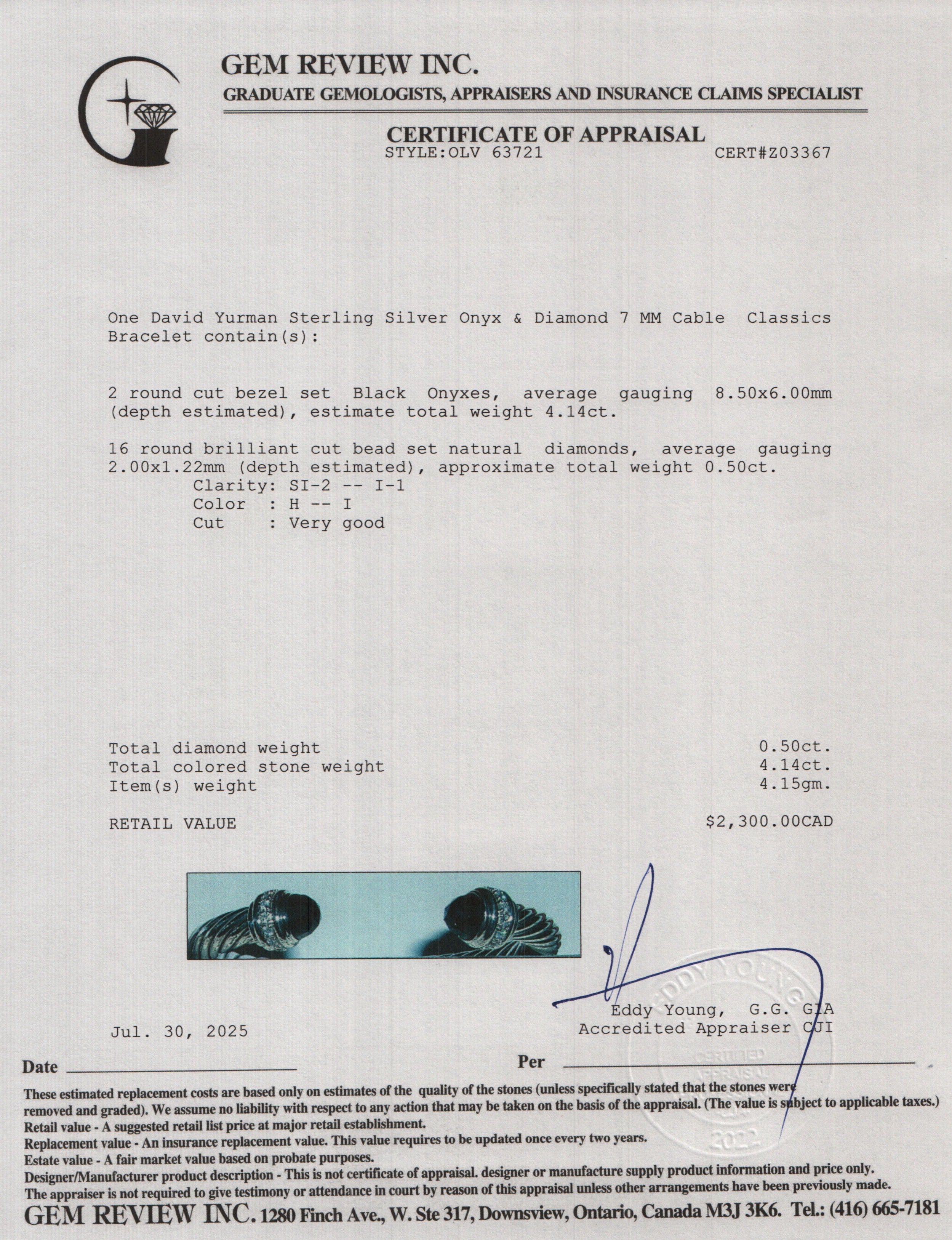 Sterling Silver Onyx & Diamond 7 MM Cable Classics Bracelet