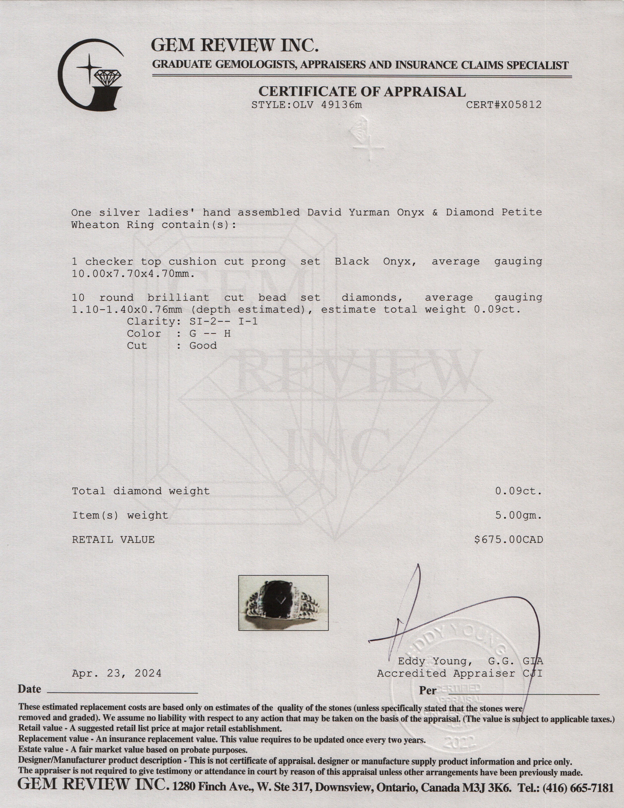 Sterling Silver Onyx & Diamond Petite Wheaton Ring, Size 5