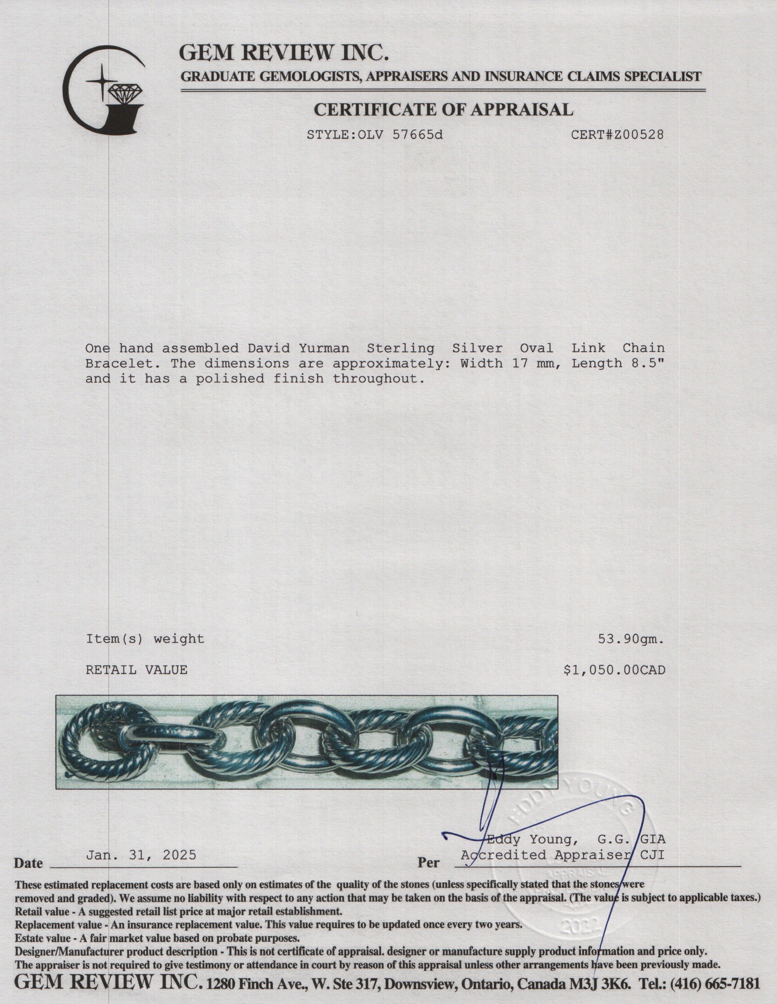 Sterling Silver Oval Link Chain Bracelet, 17 MM w/ Box