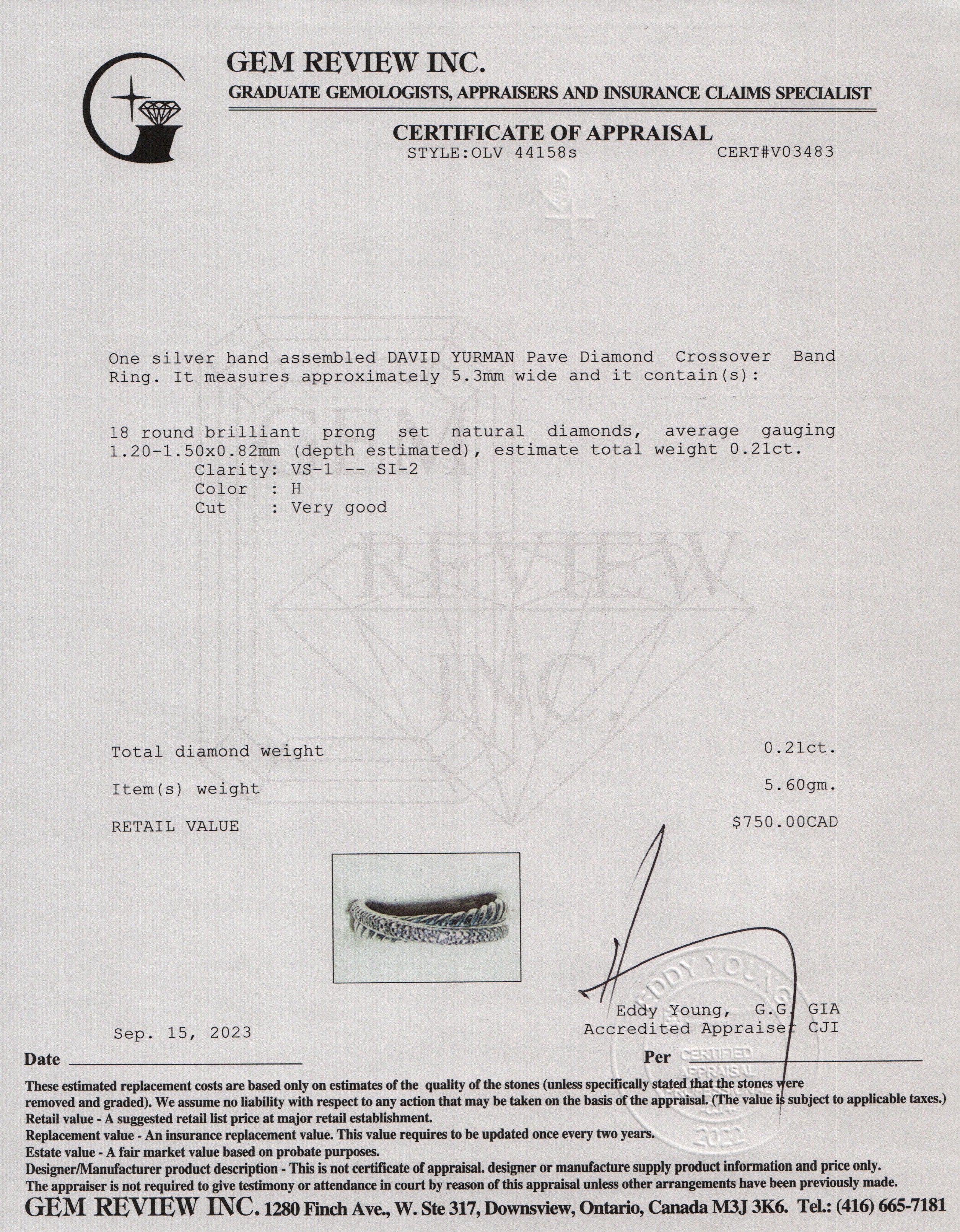 Sterling Silver & Pave Diamond Crossover 5.3 MM Band Ring, Size 8